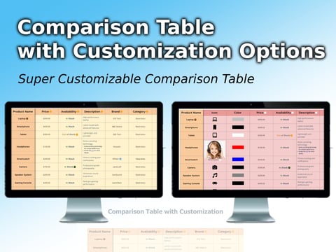 Comparison Table with Customization Options