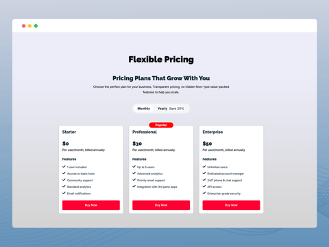 • Complete Styling Flexibility for Every Pricing Section Element