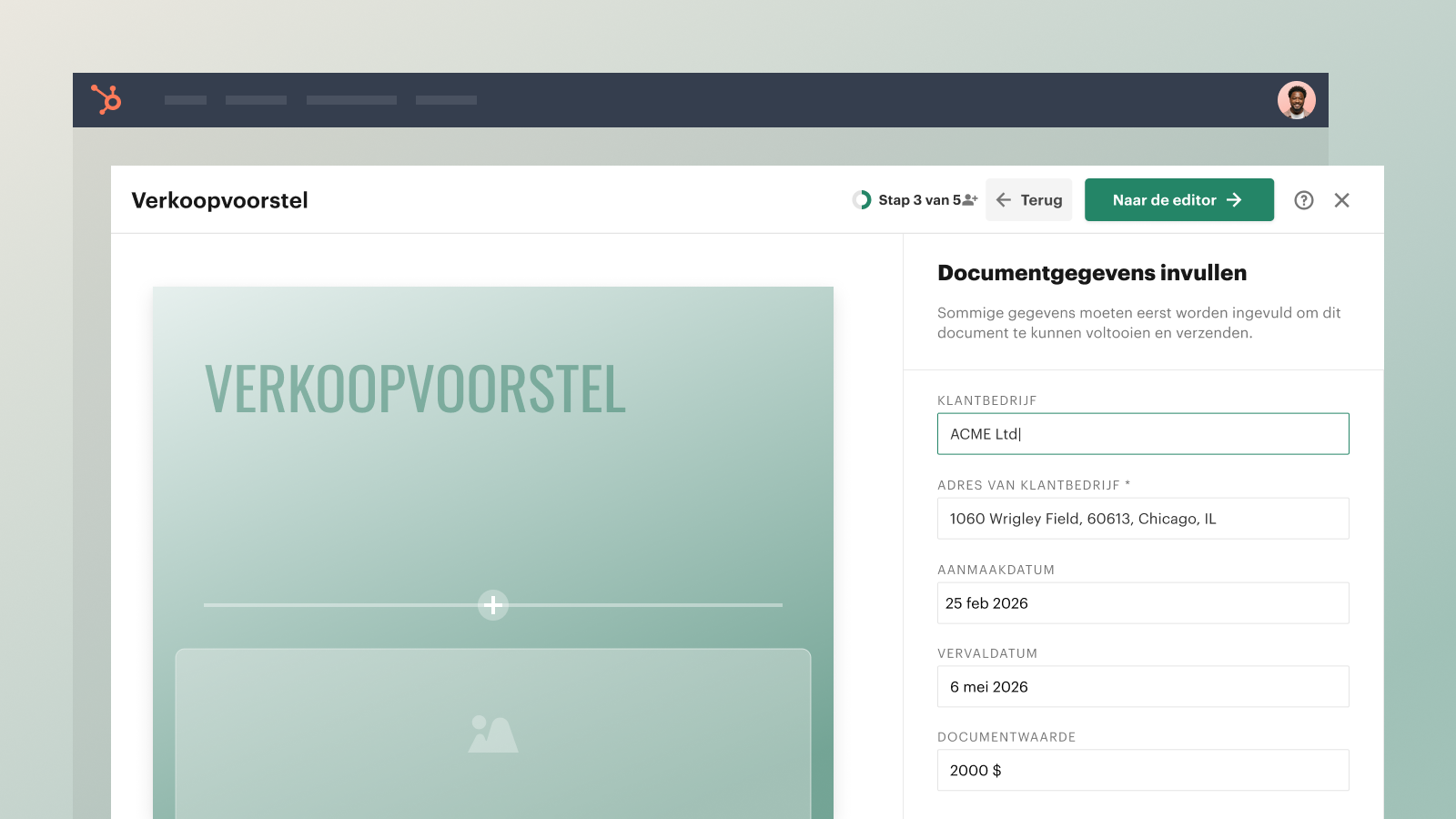 Je bespaart tijd en verkort je verkoopcyclus als je het opstellen van documenten automatiseert. In HubSpot kun je de documentstatus bijhouden, een goedkeuringsvolgorde instellen en realtime analytics opvragen. En dankzij de tweerichtingssynchronisatie hoef je gegevens niet meer handmatig te kopiëren.