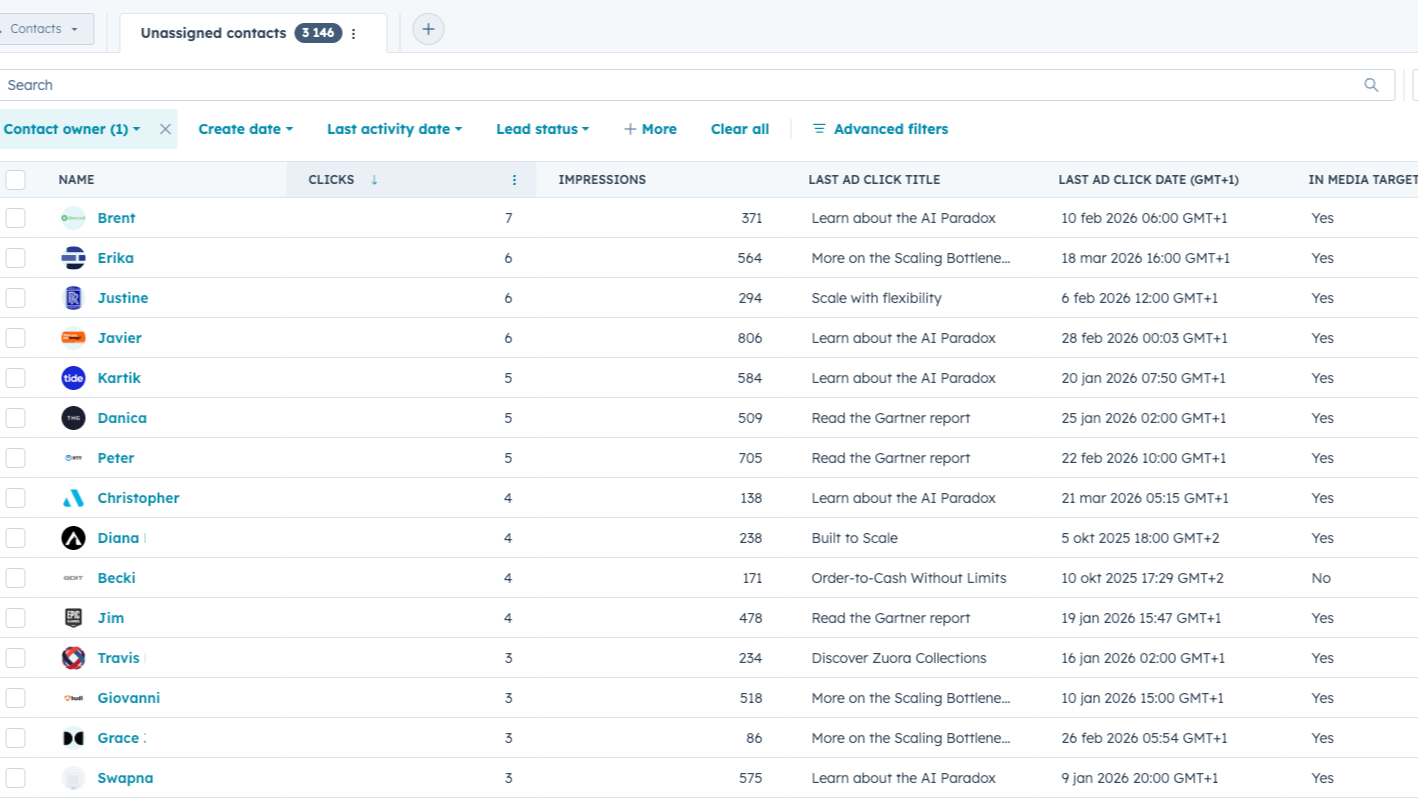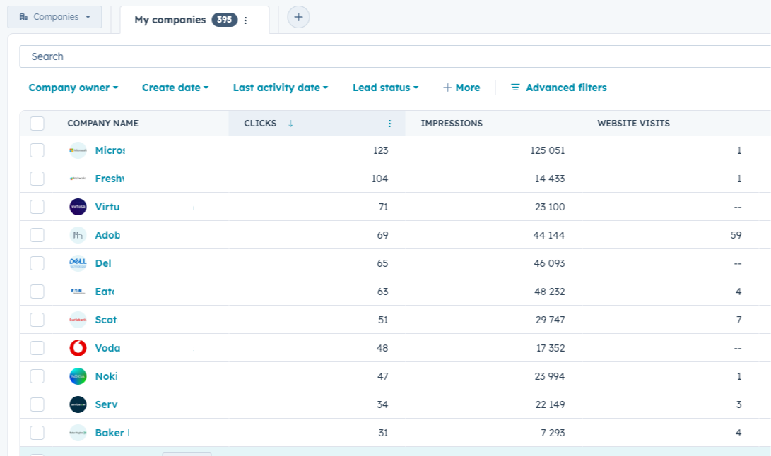 Presenteert de KPI voor bedrijfs- en contactmediamarketing in de aangepaste eigenschappen voorafgegaan door doe, gekoppeld aan het DOE-platform en elke 24 uur gesynchroniseerd. Je kunt ze gebruiken in je lijsten, rapporten en elke weergave!