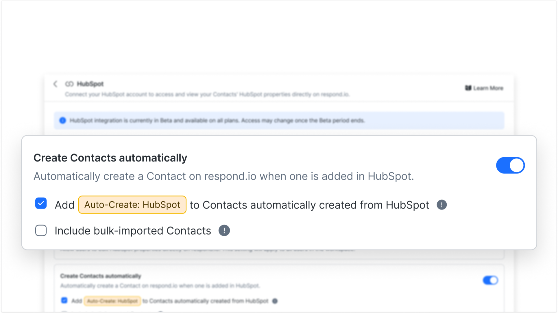 New contacts created in HubSpot can be automatically synced to respond.io, reducing manual work and keeping your data aligned in real time.