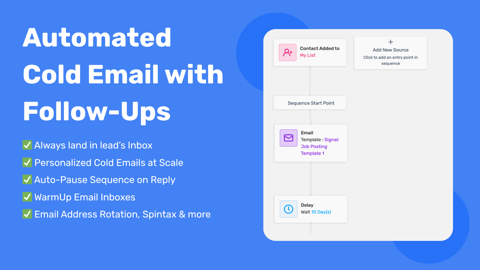 Automatically sync contacts to SalesBlink and automate sending of Cold Emails with follow-ups using SalesBlink. Ensure superb email deliverability with email verification, warmup, email address rotation and more.