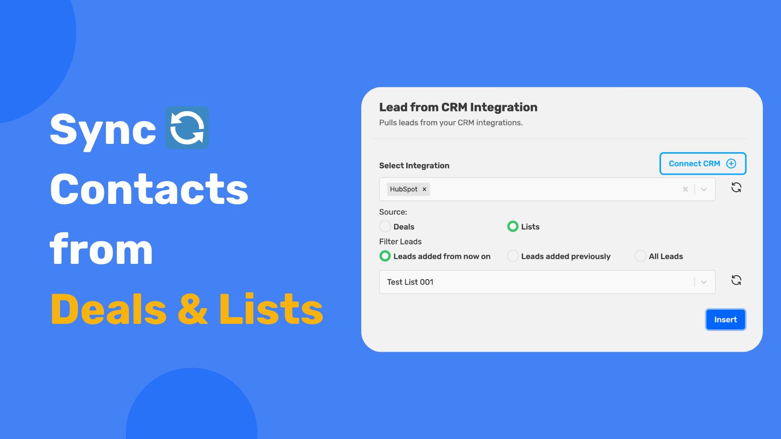 Automatically sync contacts from Deal stages and Lists to automate cold email outreach with SalesBlink.
