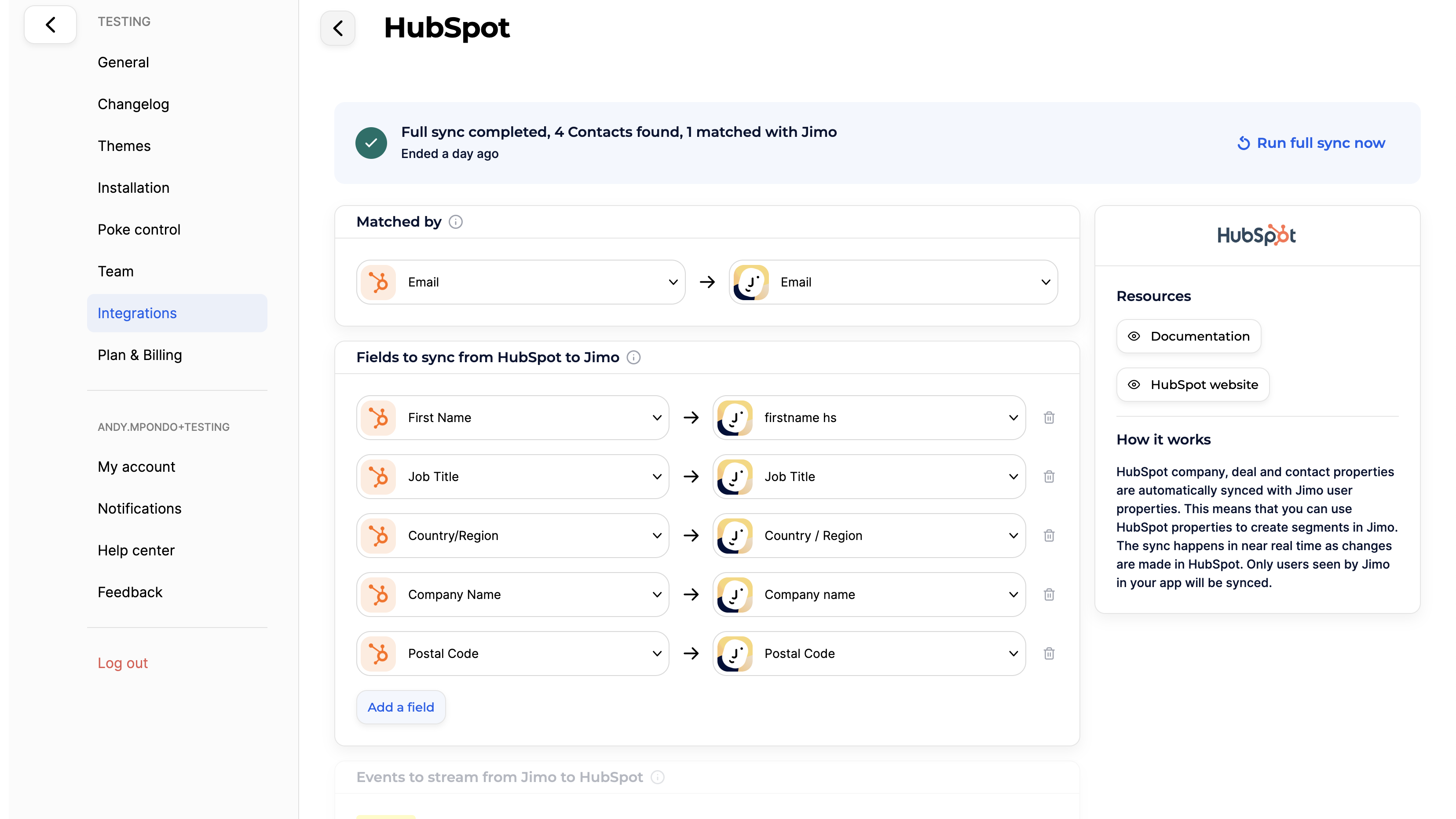Sync your HubSpot properties to Jimo and get all the data you need available in a few clicks.