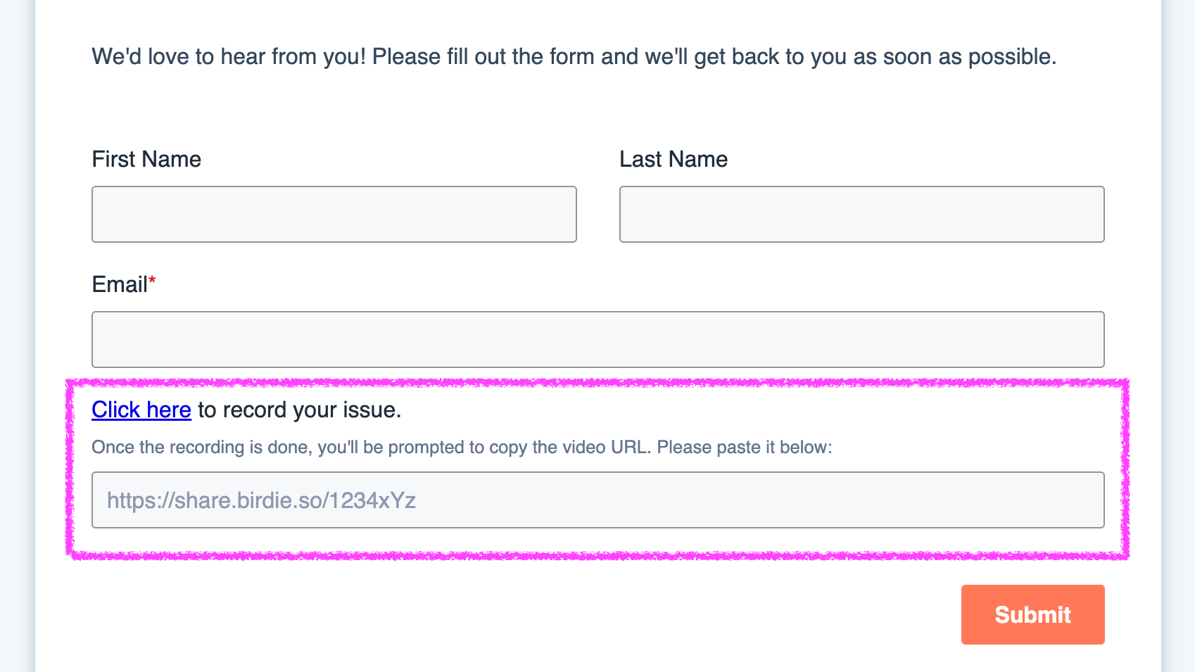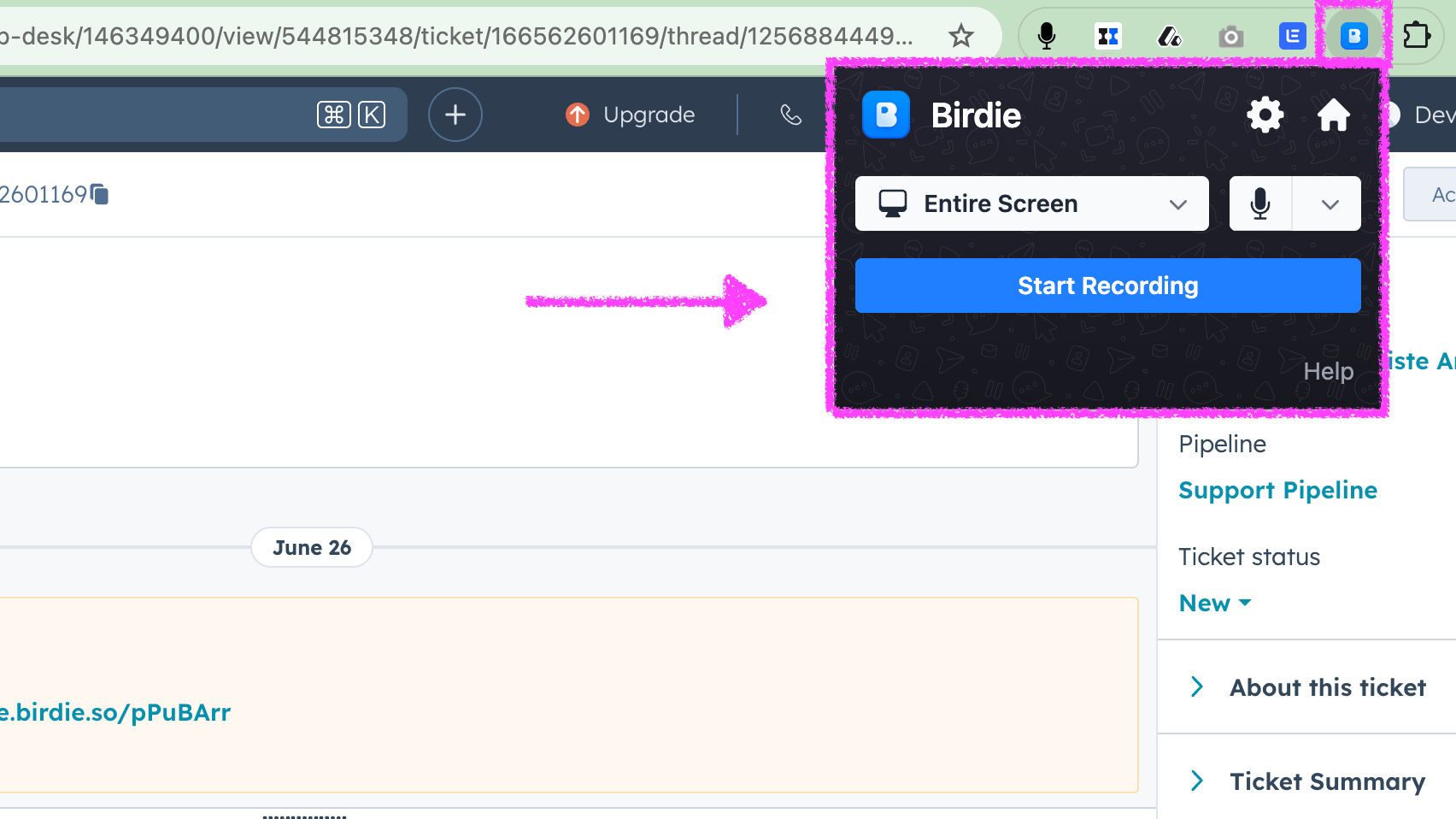 Allow customers to submit tickets with screen recordings, you need to add Birdie to your HubSpot form