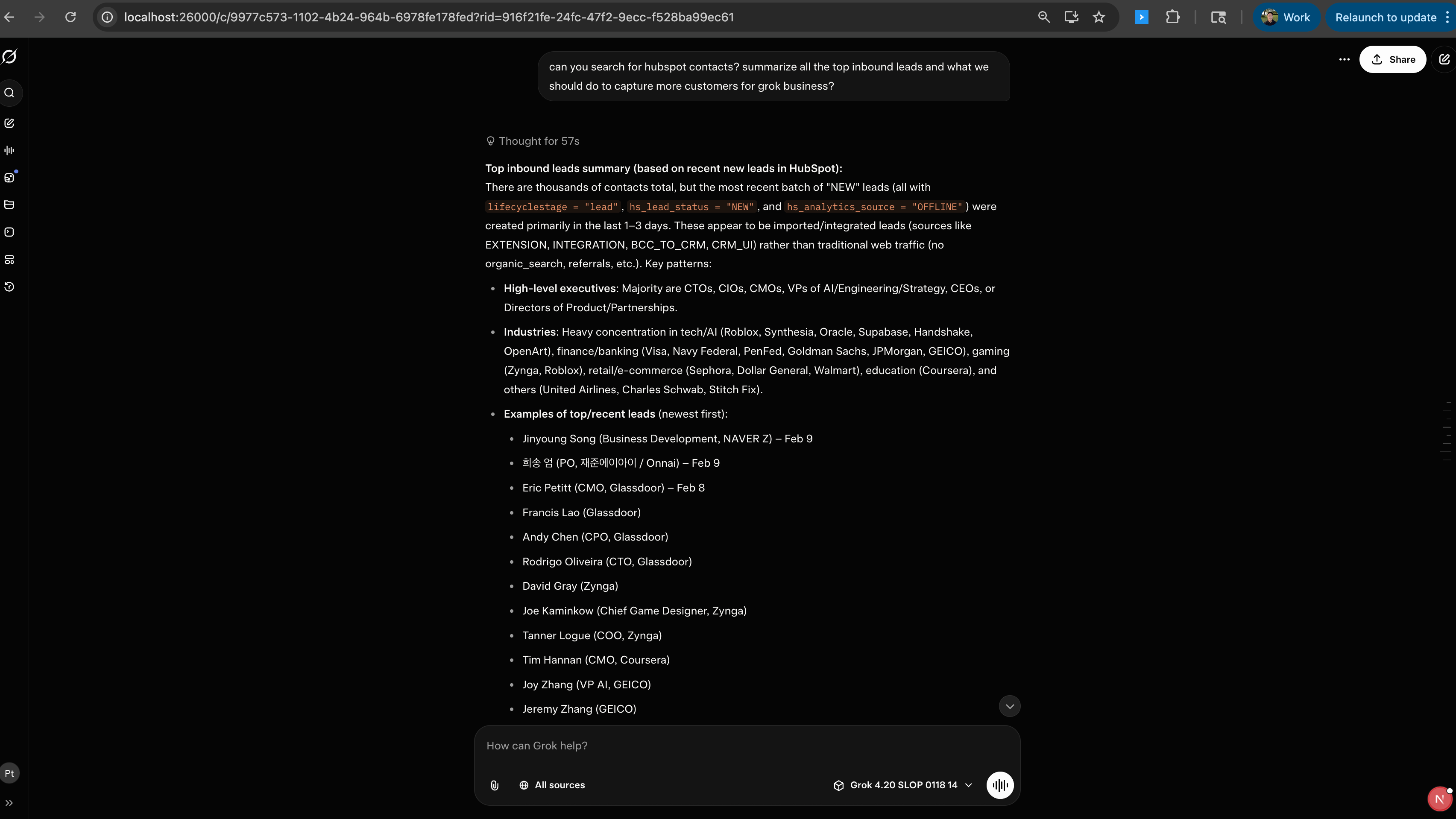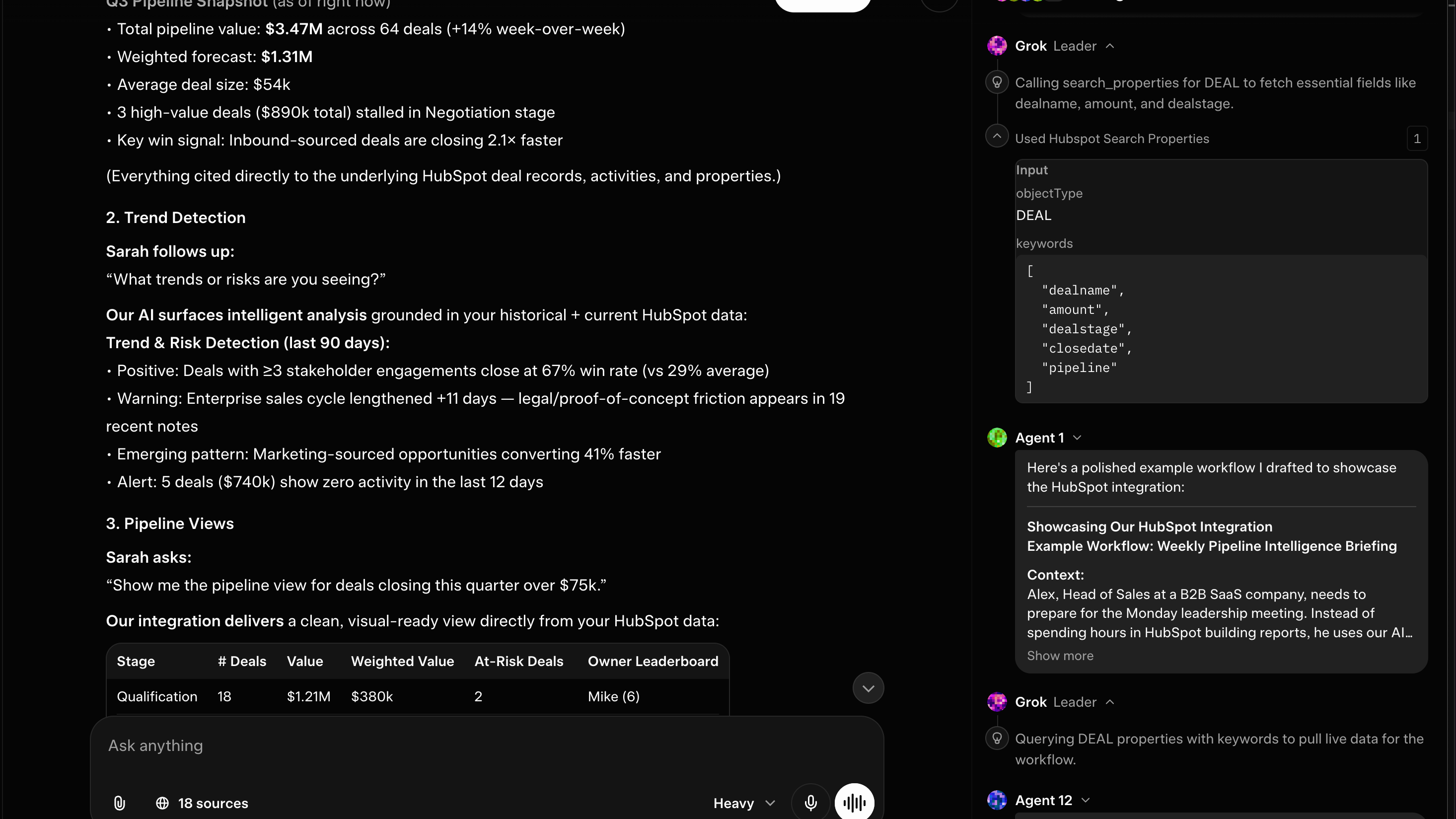Grok bruker HubSpot-dataene dine i sanntid for å levere smarte, relevante svar.