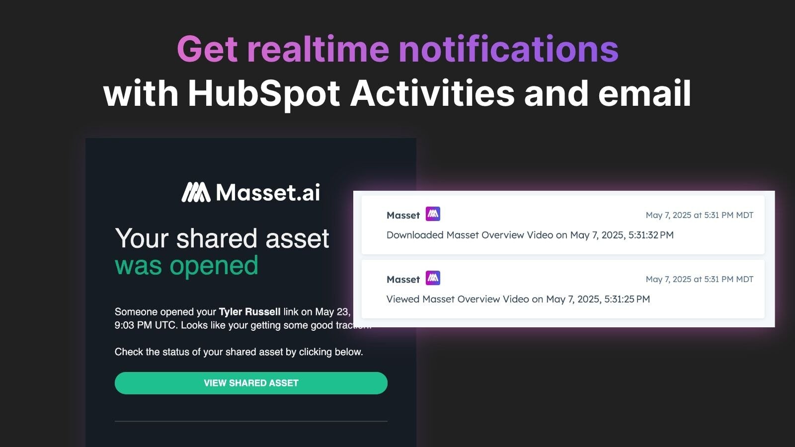 Know what's happening with your prospects and when. Because each share link is unique for your CRM Objects, you can get realtime notifications to your inbox or HubSpot Timeline about prospect activity.