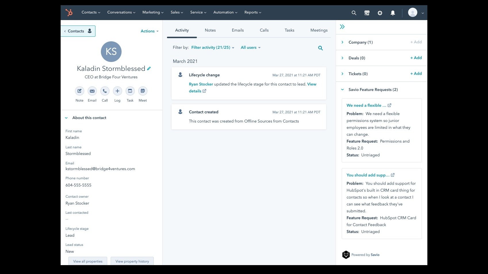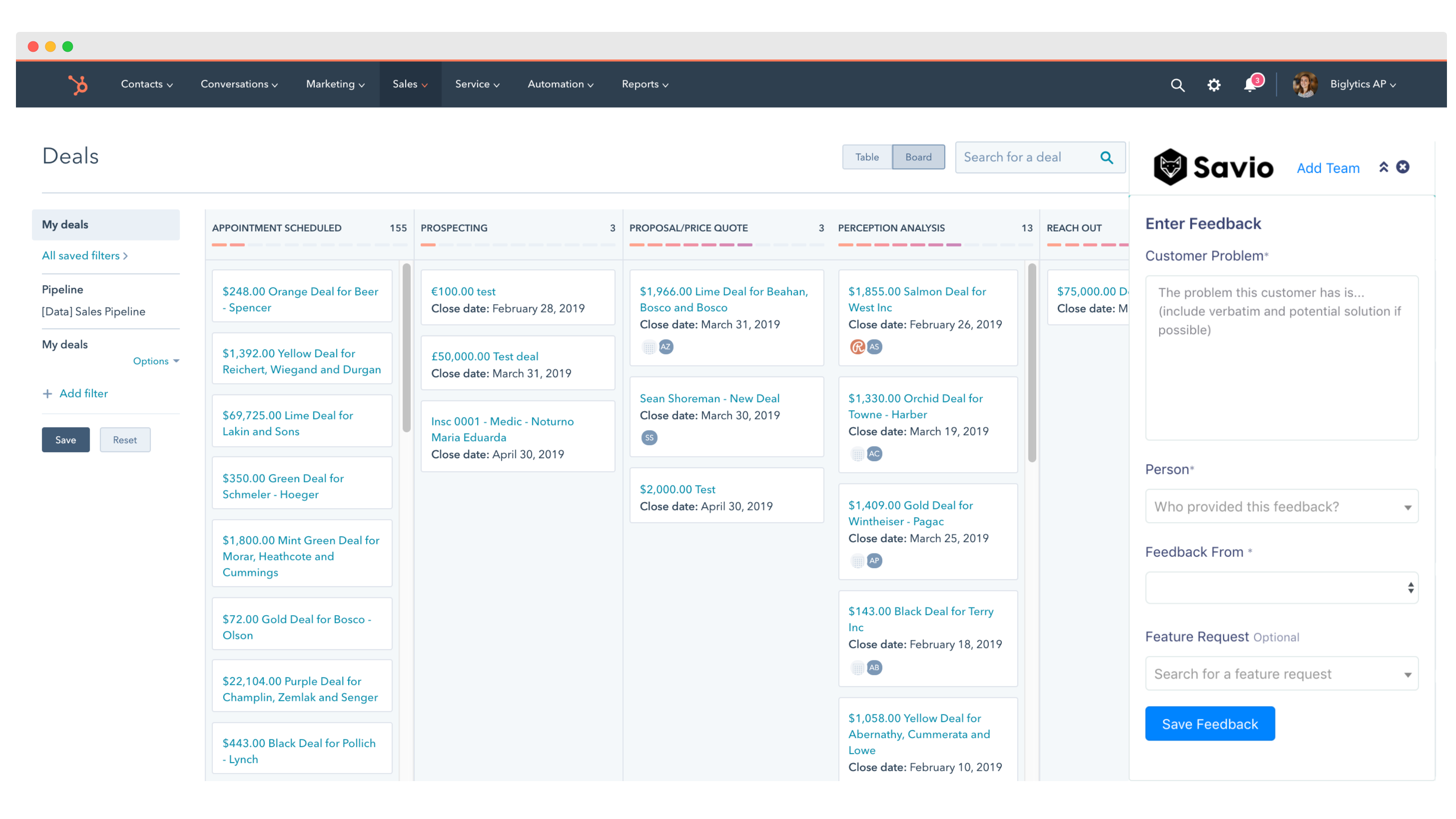 Support, Success, and Sales teams can send customer feedback to Savio Without leaving HubSpot.