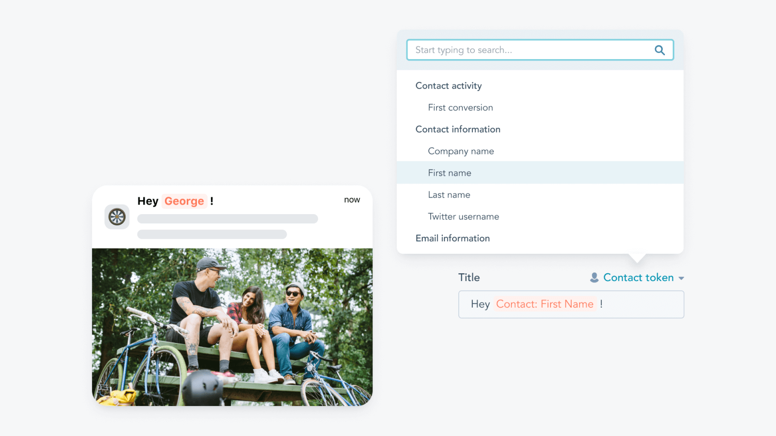 Send mobile push, web push, SMS, in-app messages, and email from HubSpot workflows. Use custom user data—like names, preferences, and behaviors—to create highly personalized messaging experiences. Automate engagement at key moments, ensuring users receive the right message at the right time.