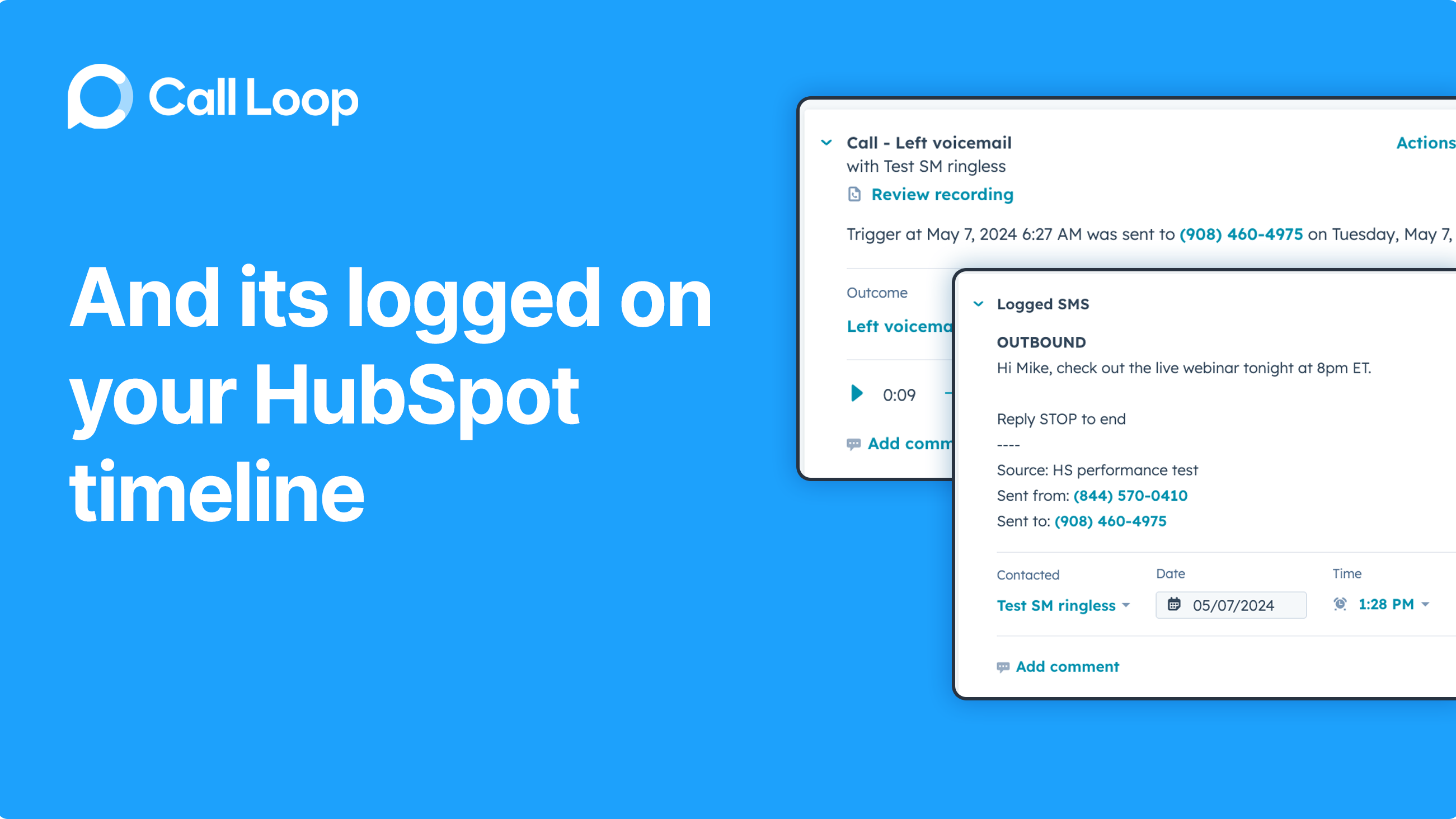Automatically log all calls, texts, voicemails, and broadcasts directly to your HubSpot contact timeline. Gain a complete view of your customer interactions, keep your team aligned, and ensure no communication slips through the cracks. Perfect for tracking engagement and making informed decisions based on real-time data.