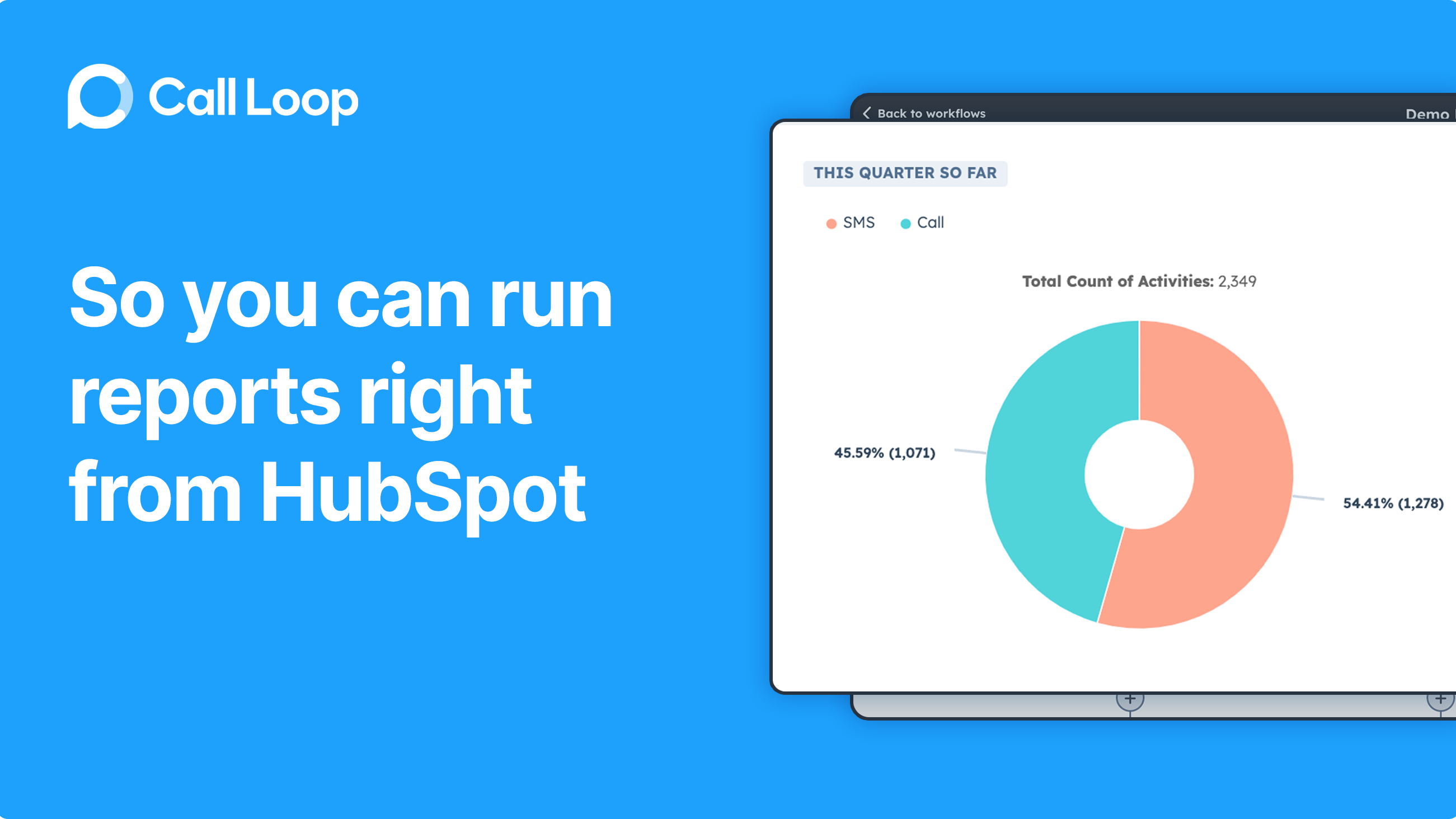 Easily track and measure the performance of your SMS, calls, and ringless voicemails logged in HubSpot. Access comprehensive reports and dashboards to monitor key metrics, identify trends, and optimize your communication strategy. Gain insights into customer engagement, campaign effectiveness, and team performance—all from within your HubSpot CRM.