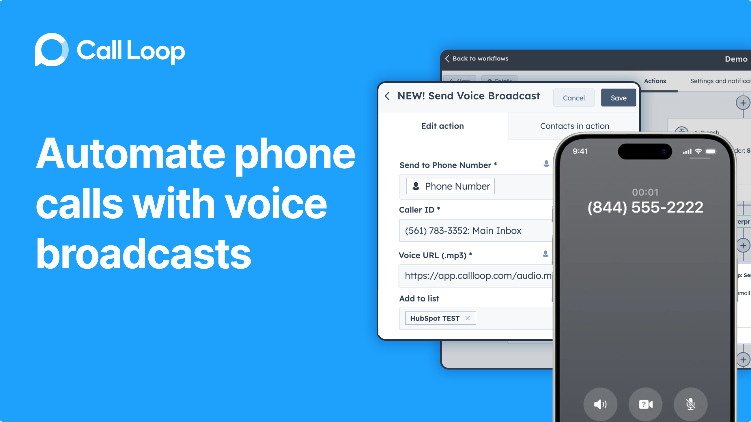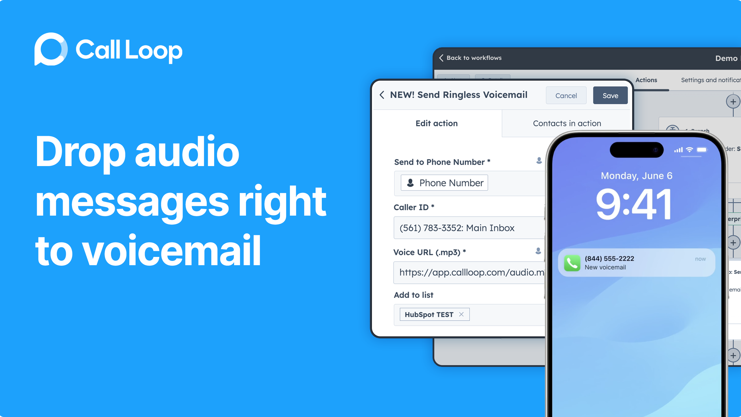 One software to send texts, make automated calls, and drop audio messages directly to voicemail right from HubSpot Workflows.