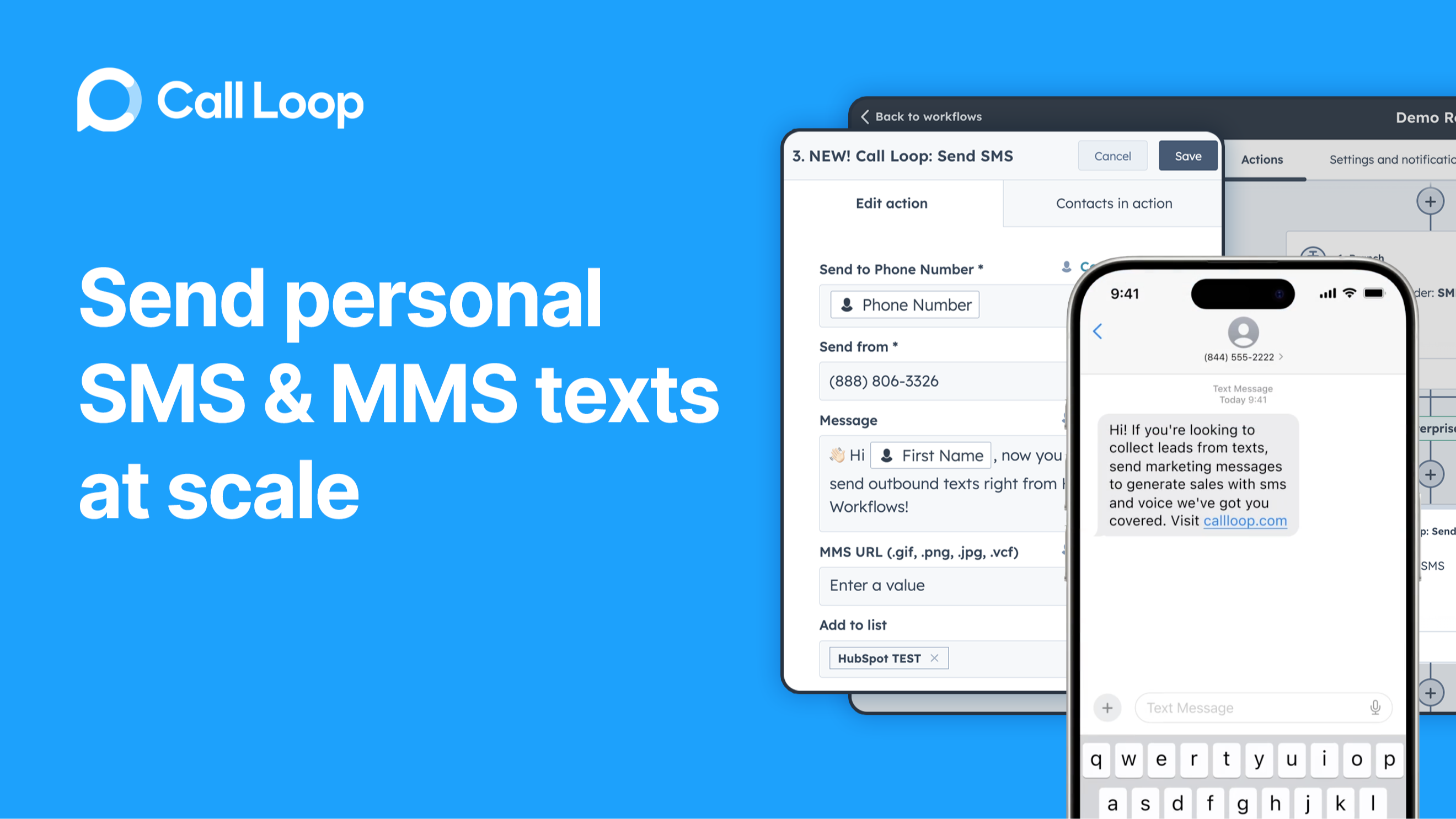 Easily send personalized SMS and MMS (GIFs, images, vCards) directly to your contacts from HubSpot Workflows. Engage leads and customers with targeted messages, share promotions, send reminders, or follow-up with rich media. Automate your messaging strategy and build stronger connections while driving better results.