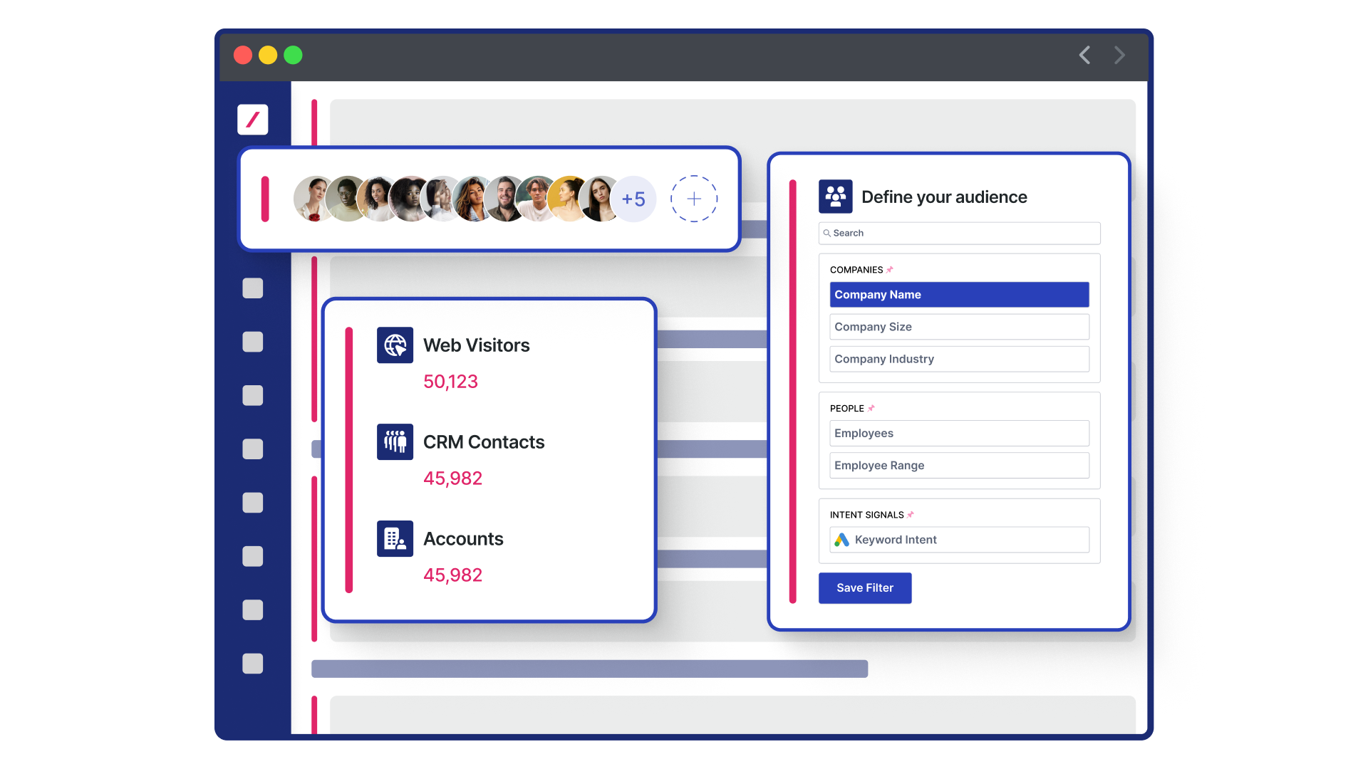 Create dynamic audiences using account and contact data, and automatically sync them across Google Ads platforms to power unified multi-channel campaigns. Build precise, high-converting audiences by combining intent signals, buying stages, and CRM attributes to deliver tailored messaging at each buyer stage in Google Ads.