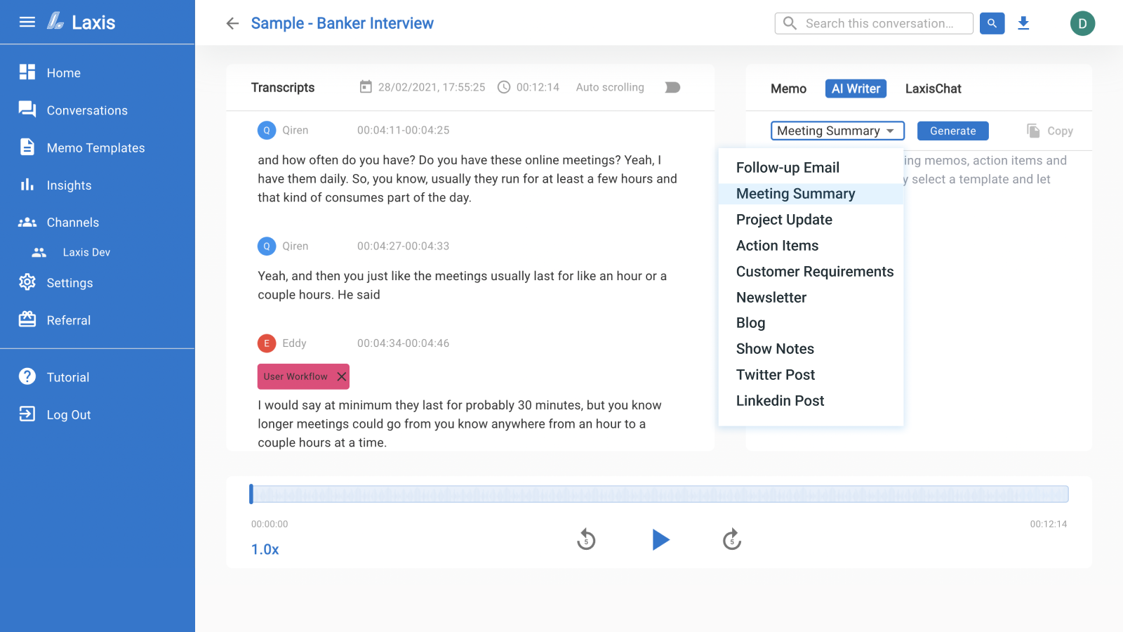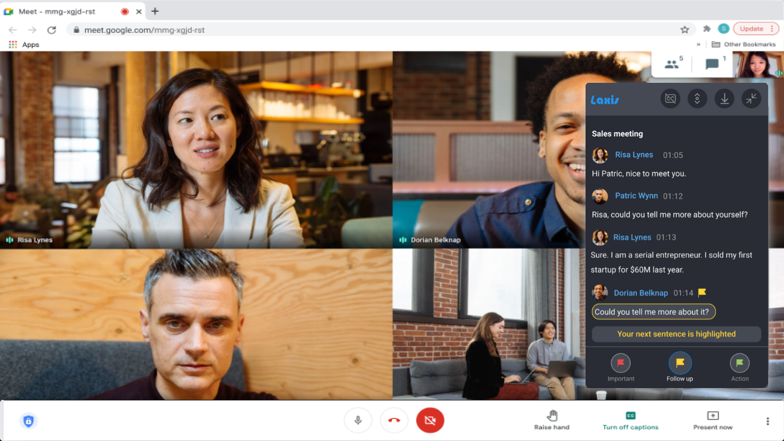 - Laxis AI captures customer requirements and action items instantly