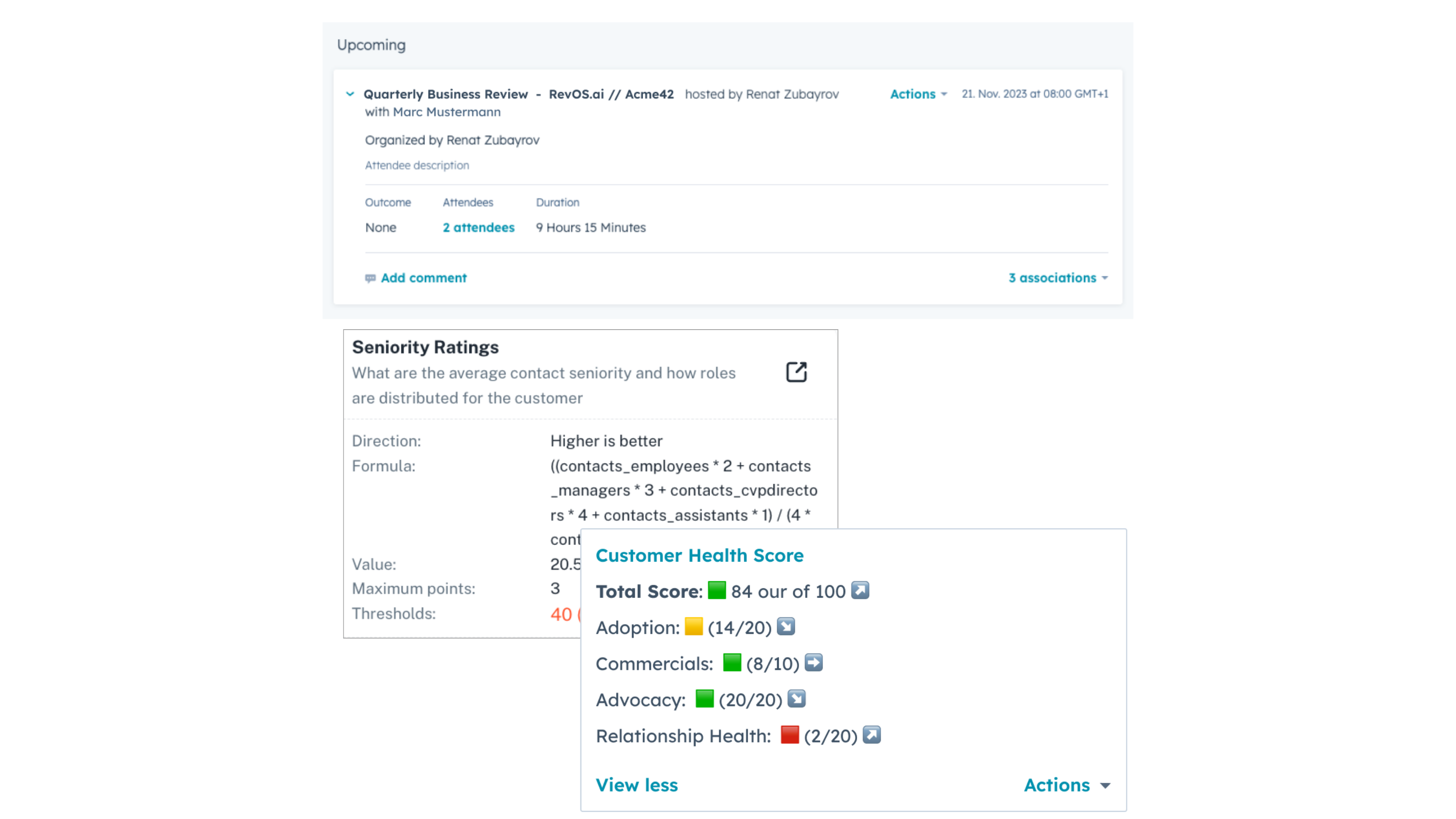 Get your AI Customer or Deal Scoring models right in front of your eyes in HubSpot. Be notified about every health change via HubSpot activity events.