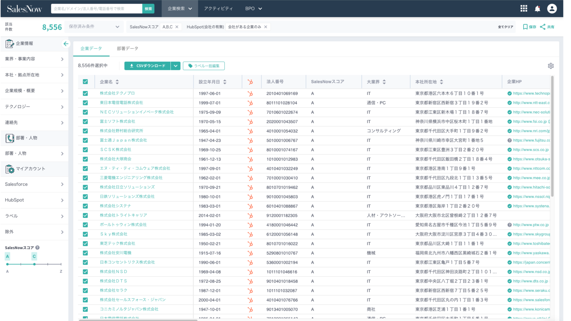 ・SalesNowの中で作成した細かい条件の企業リストをHubSpot内で再現可能。
