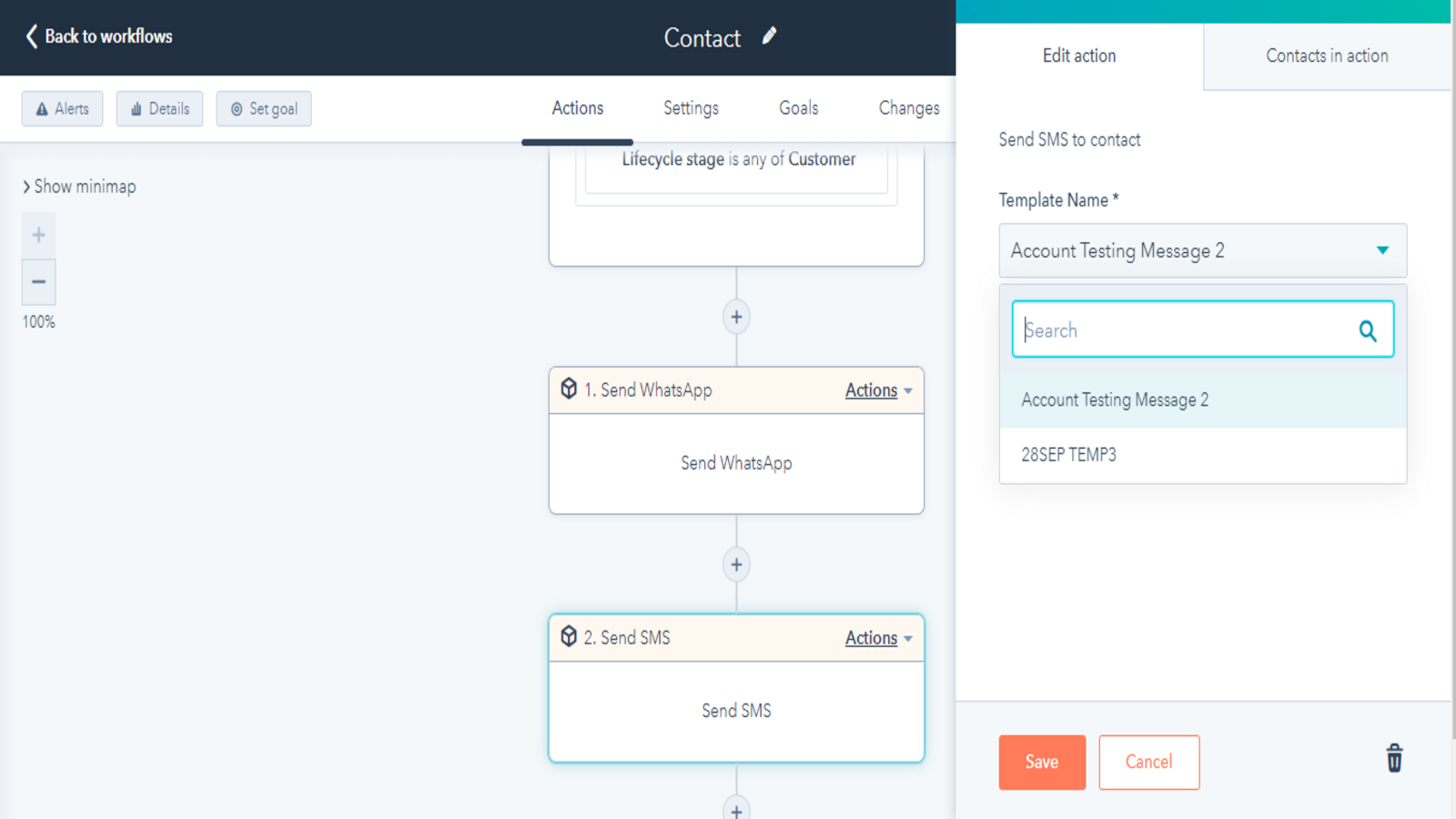 Create a workflow to send automated SMS/WhatsApp messages. Send automated messages to customers reminding them of meetings, webinars, upcoming or pending bill payments, and more. Communicate with the customers on their preferred messaging app and get faster responses.