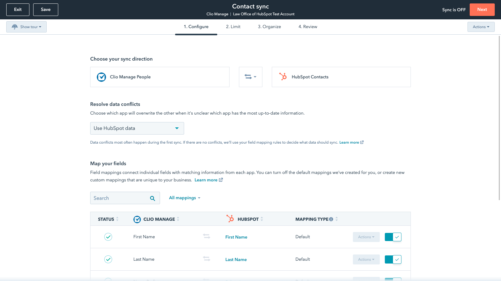 Data Sync - Sync data between Clio Manage and HubSpot