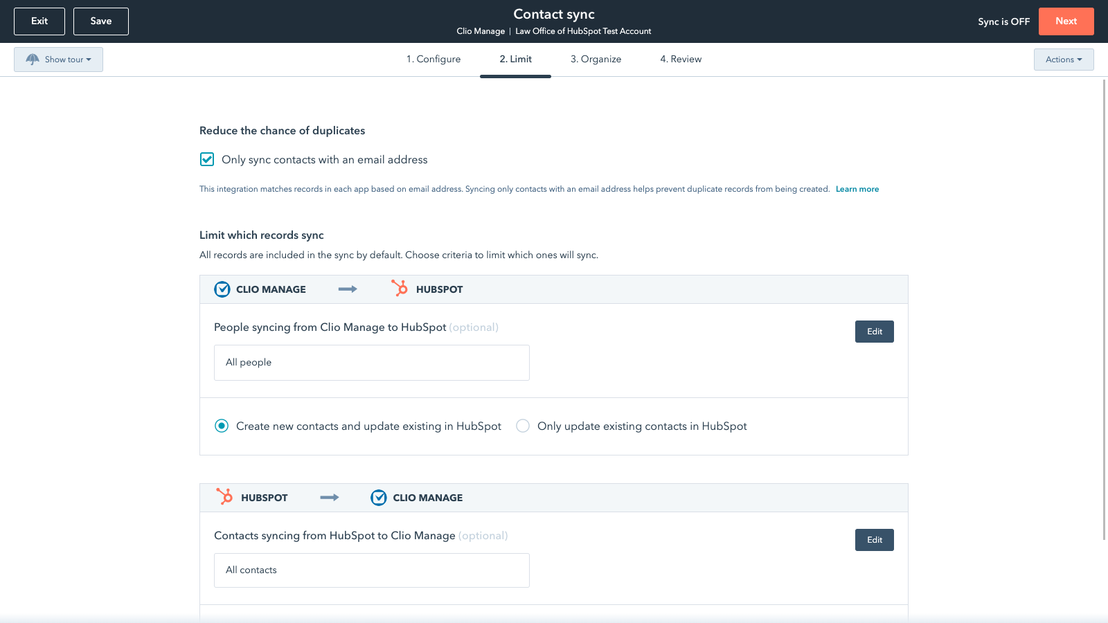 Sync Clio Manage and HubSpot data