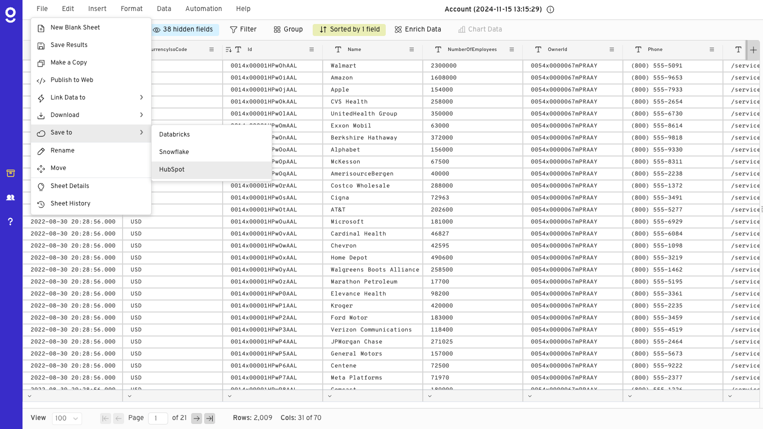 Enrich HubSpot data with datasets from Gigasheet. After processing external datasets or cleaning up HubSpot data brought in via the import, Sync To HubSpot allows syncing the data back to HubSpot.