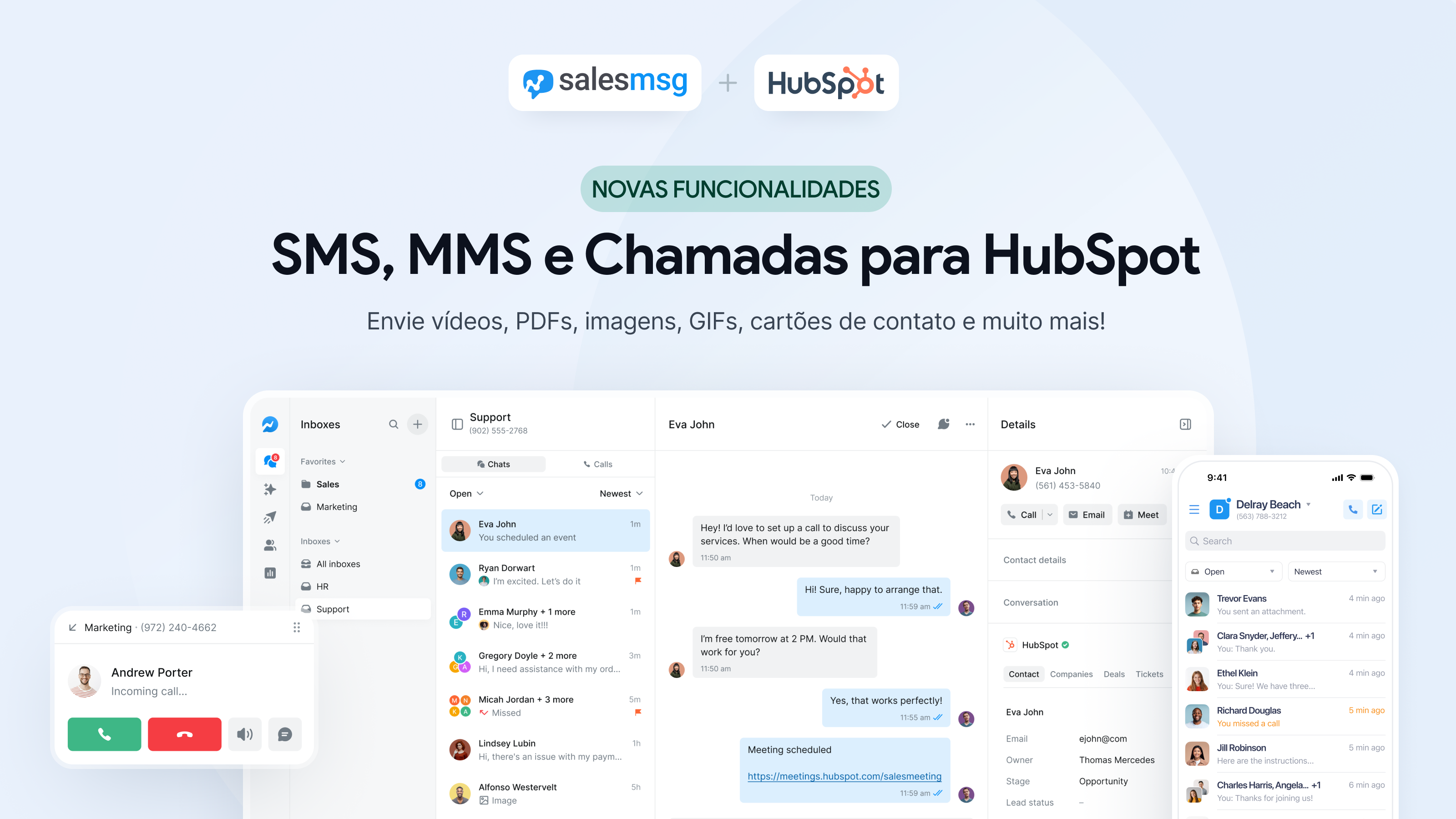 Agora, seus leads e clientes podem enviar mensagens de texto para você, facilitando o envolvimento das equipes de vendas, marketing e suporte, respondendo a perguntas e fechando negócios - tudo por meio de mensagens de texto.