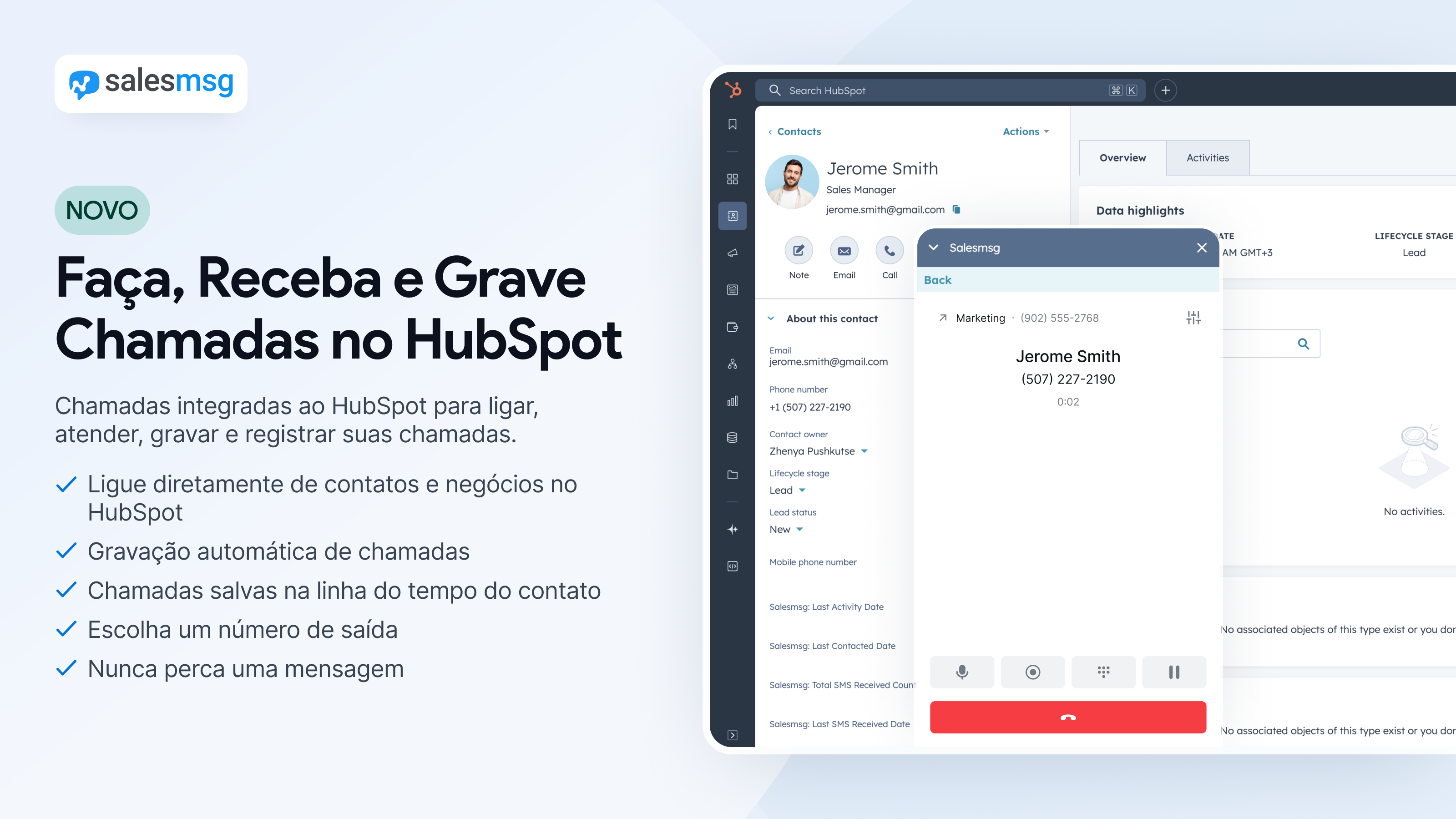 A Salesmsg é uma plataforma simples e escalonável que se conecta ao HubSpot e facilita o envio de mensagens de texto e chamadas para seus contatos.