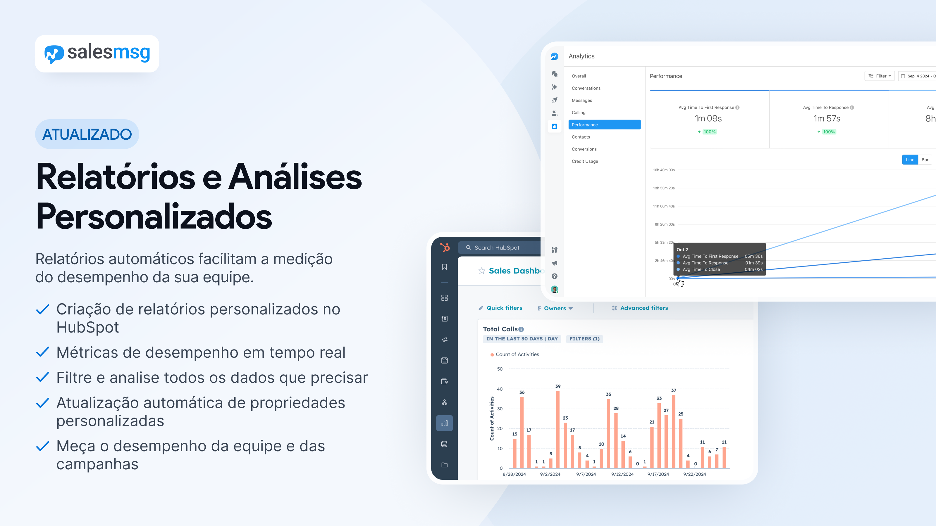 Forte integração com a HubSpot. Com a nossa integração nativa e perfeita com a HubSpot, você nunca precisa sair do aplicativo da HubSpot para enviar mensagens de texto ou adicionar conversas aos registros de contatos. Além disso, você pode usar mais de 30 propriedades da sua conta da HubSpot para acionar fluxos de trabalho e personalizar suas mensagens.