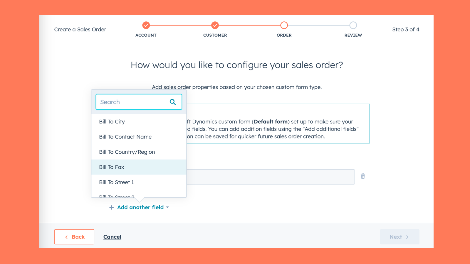 Create a Microsoft Dynamics 365 sales order and add in all the relevant information–so sales reps can kick off the next steps in the fulfillment process–without navigating away from HubSpot. Create it automatically using a HubSpot deal workflow or manually through a HubSpot deal record.