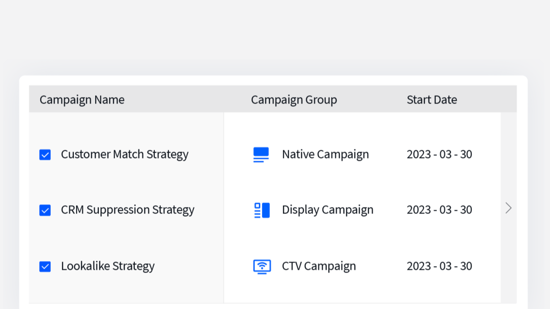 Unleash the power of your 1st-party data for acquisition, loyalty, and retention campaigns. Leverage strategies like customer match, suppression lists, and lookalike modeling to create targeted ads. Focus on new leads and expand your reach to find new customers who fit your brand and ABM/CRM audiences.