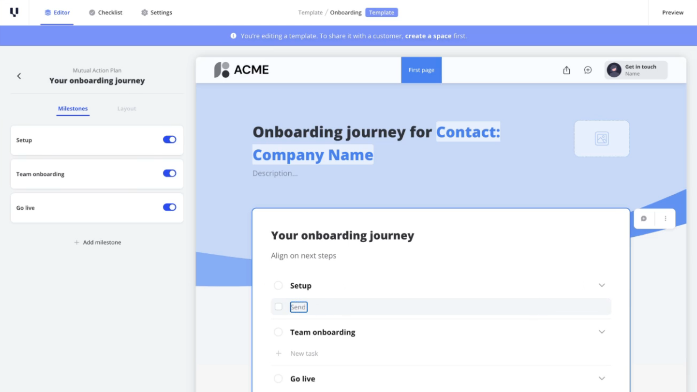 Use templates for mutual action plans, ROI decks, timelines, and onboarding checklists – all in one workspace your buyers actually come back to.