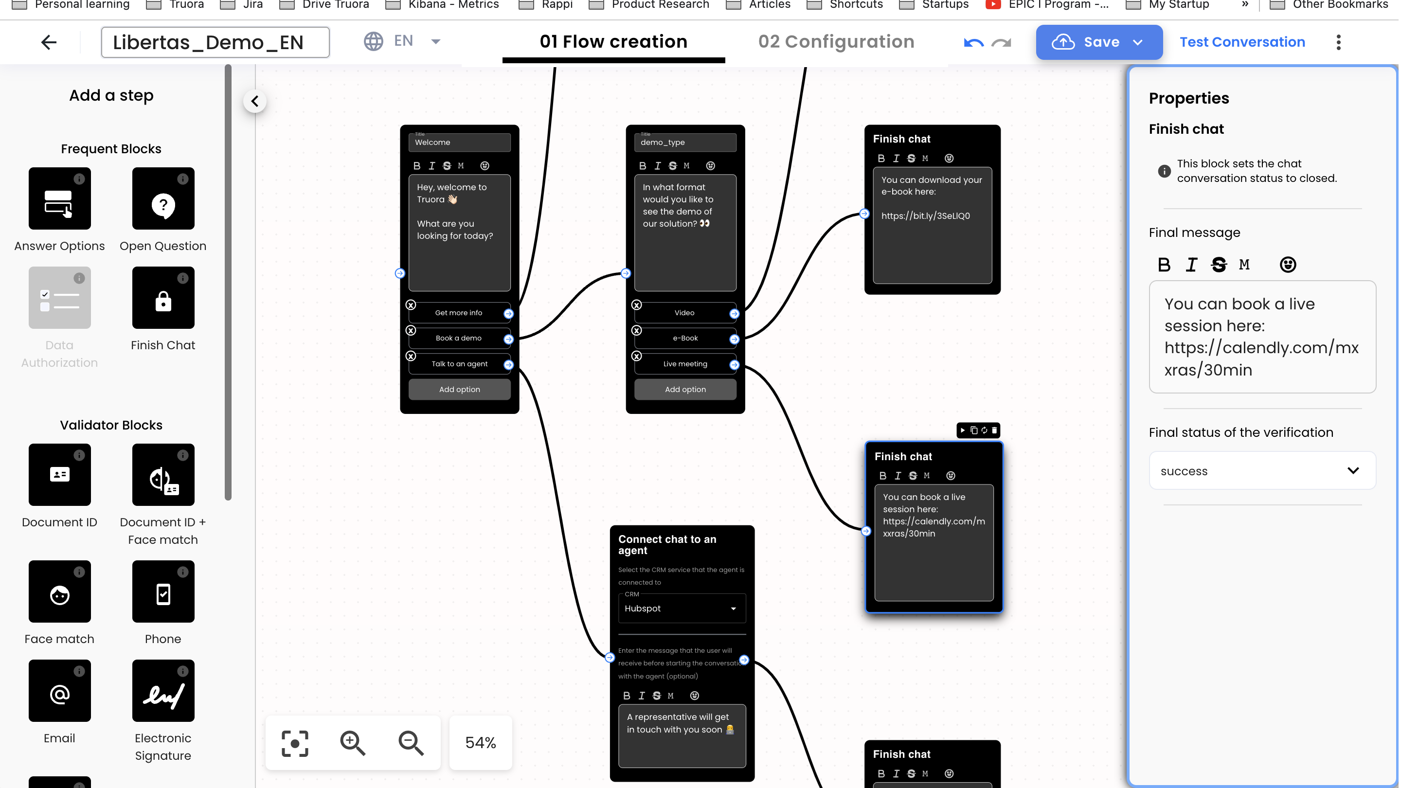 - Action in workflows that allows you to send WhatsApp notifications or start conversations based on a HubSpot condition. - Design the WhatsApp conversation in Truora and automatically send it your users from HubSpot. - Store your users answers in HubSpot and automate the following steps of the customer journey.
