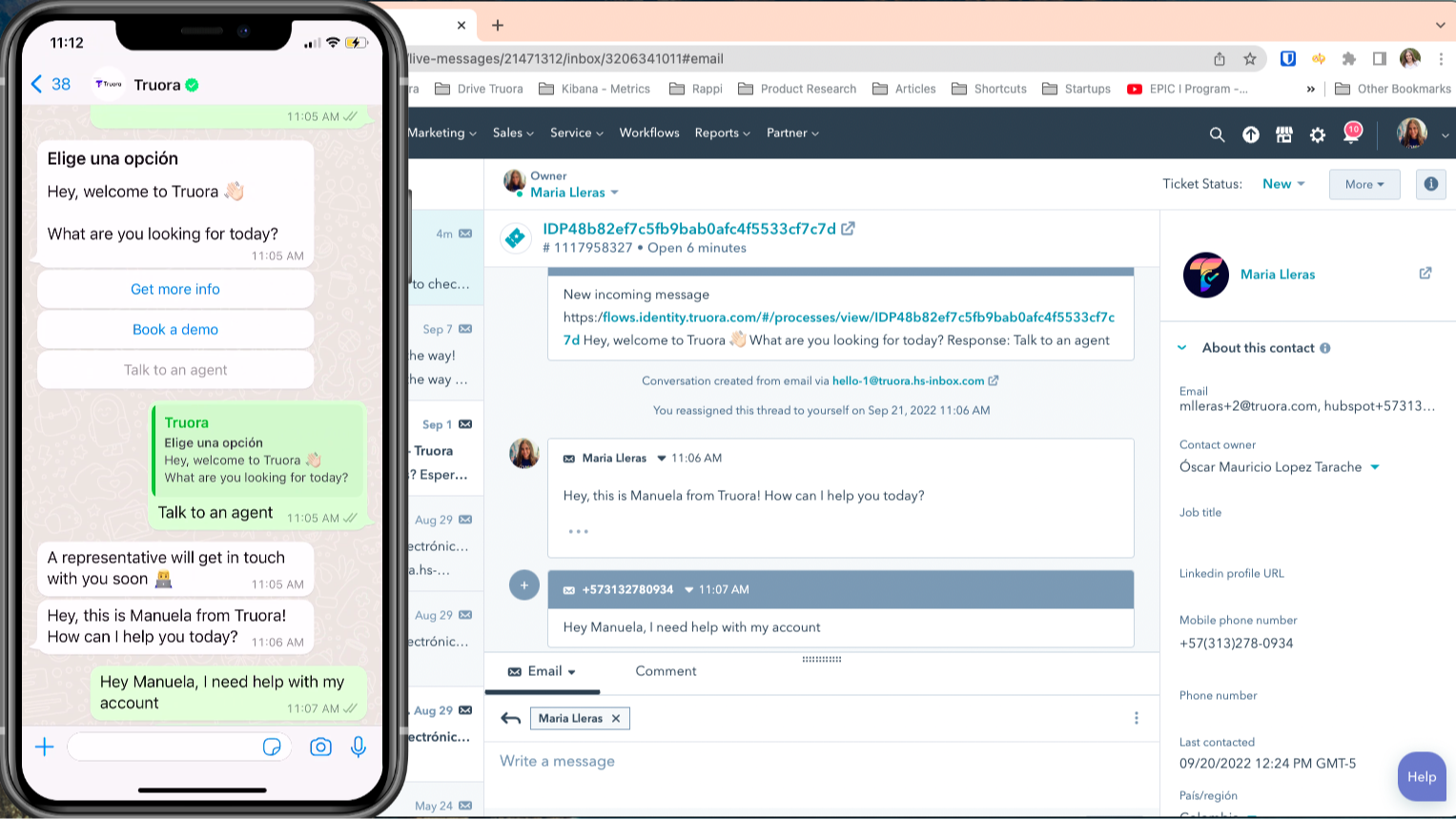Truora’s platform is fully connected to HubSpot allowing companies to integrate WhatsApp into their HubSpot customer journey without any additional development.