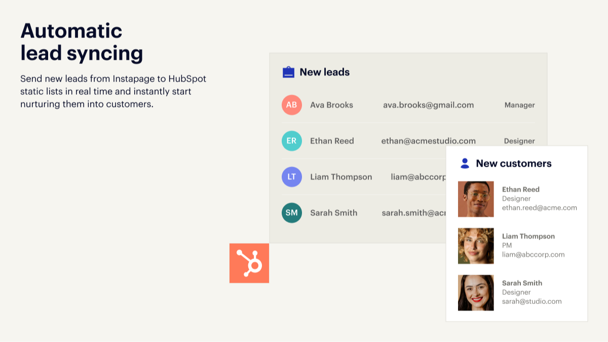 Build high-performing landing pages with Instapage and automatically send every lead to HubSpot — eliminating manual uploads, keeping your CRM up to date, and enabling instant outreach.