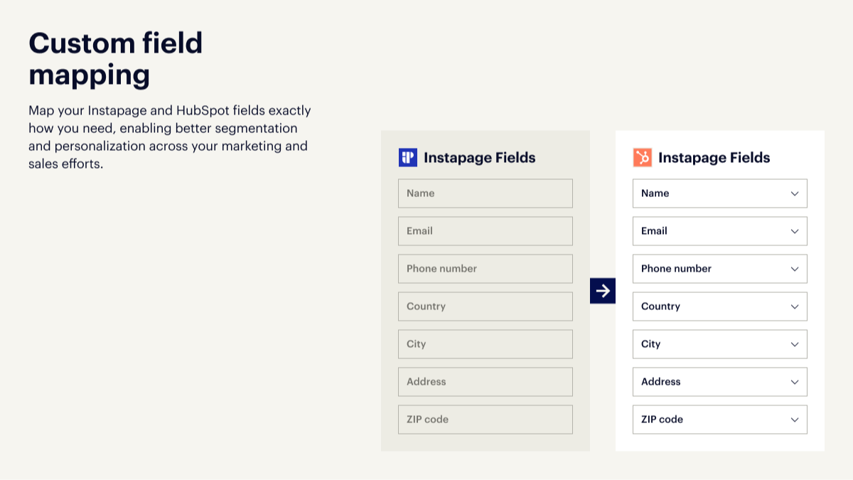 Map your Instapage and HubSpot fields exactly how you need, enabling better segmentation and personalization across your marketing and sales efforts.