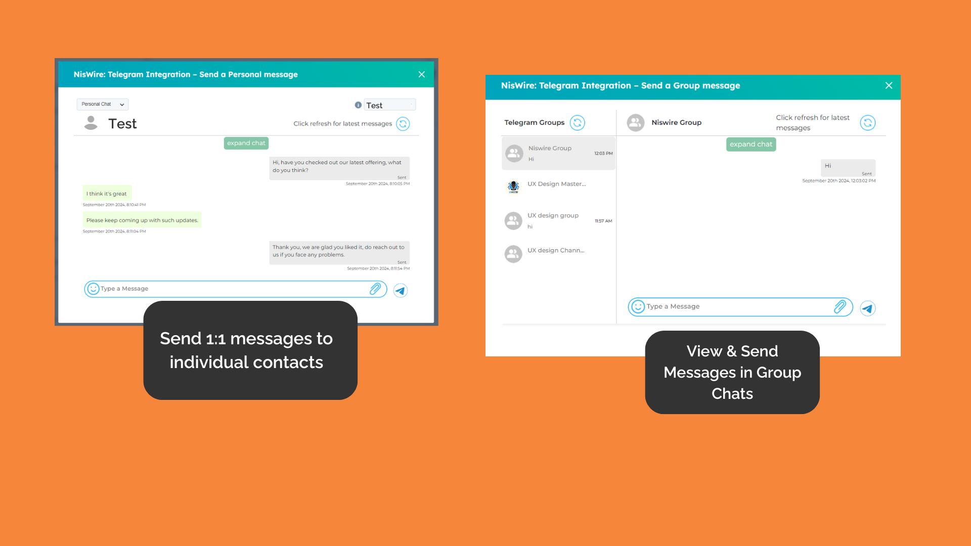 Send and Manage 1:1 and Group Telegram Messages with Niswire