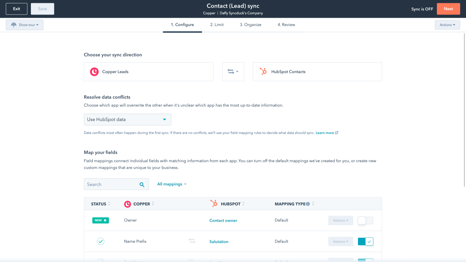 - Two-way sync: Data is shared between Copper and HubSpot in real time