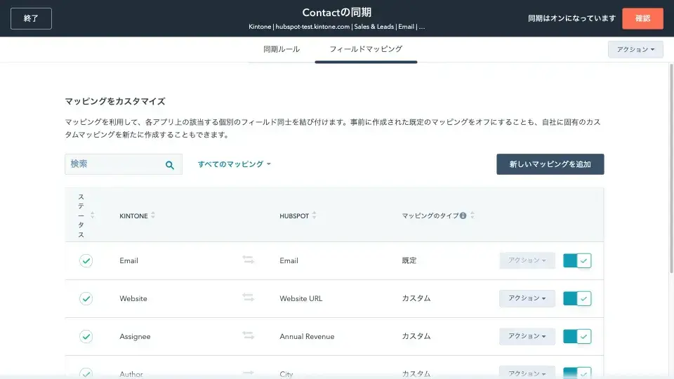 Data Sync - kintoneとHubSpotの間でデータを同期