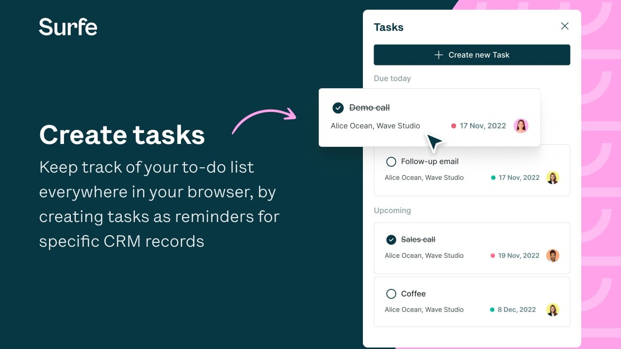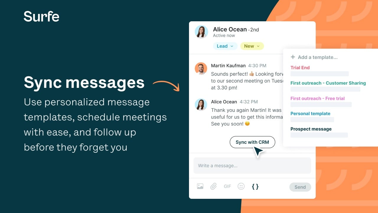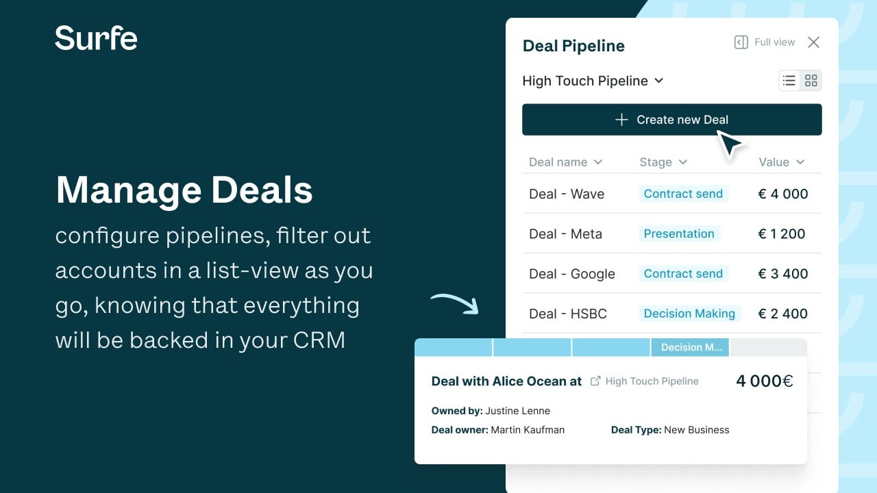 Surfe seamlessly integrates HubSpot into your sales workflow, bringing your CRM to where your sales happen.