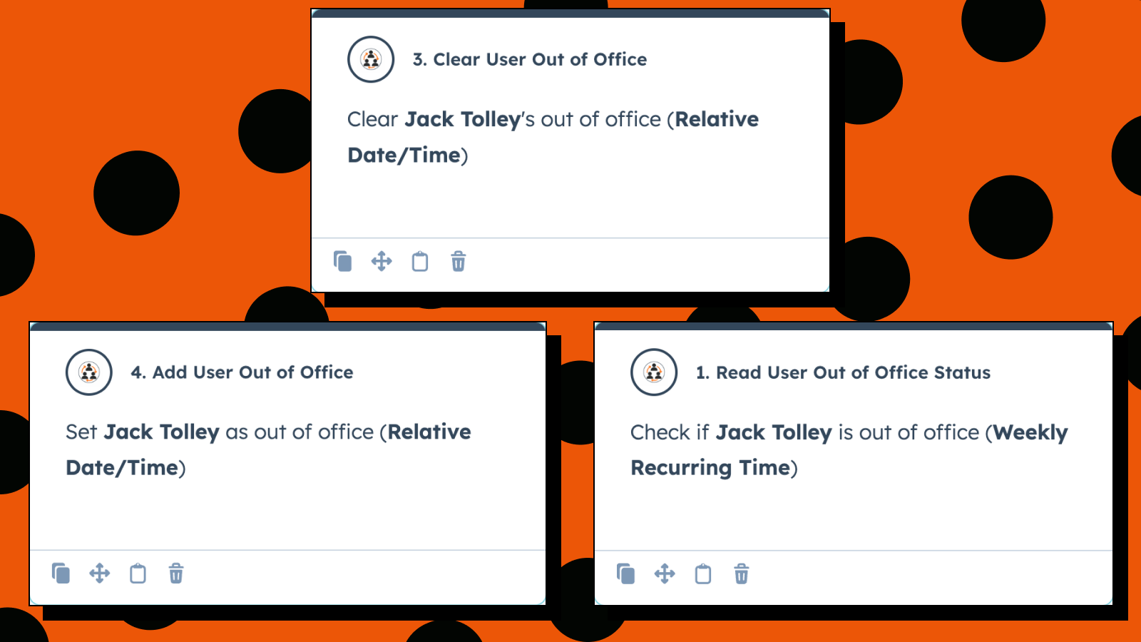 Our simple Read/Add/Remove workflow actions allow you to detect and automate when a user will be around, in any workflow you like.