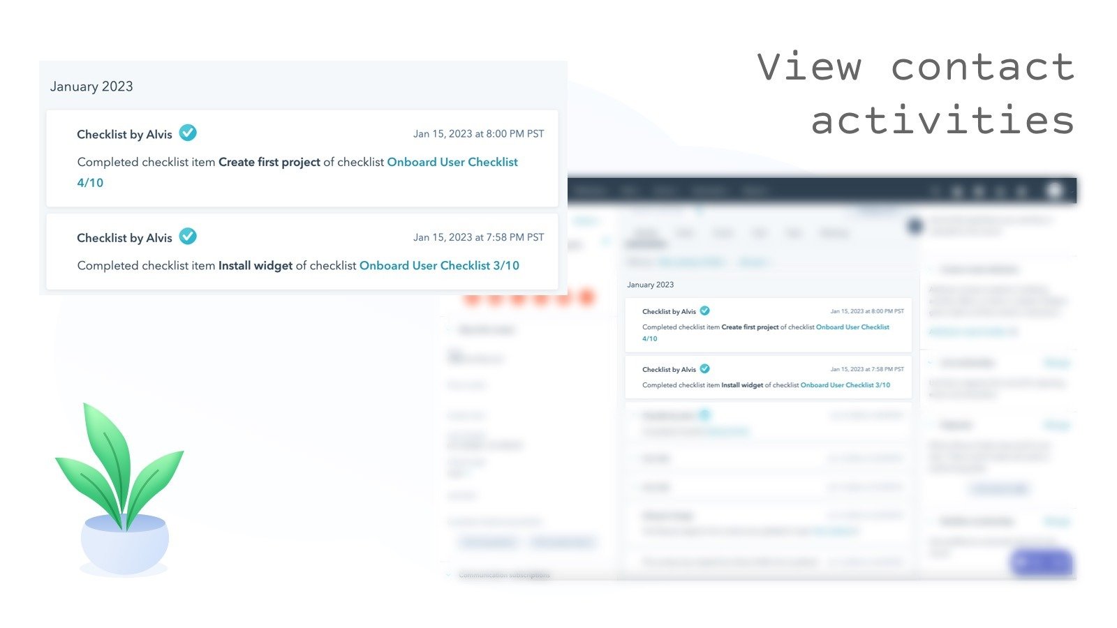 A customer success manager can view a contact's checklist progress on the contact's page.