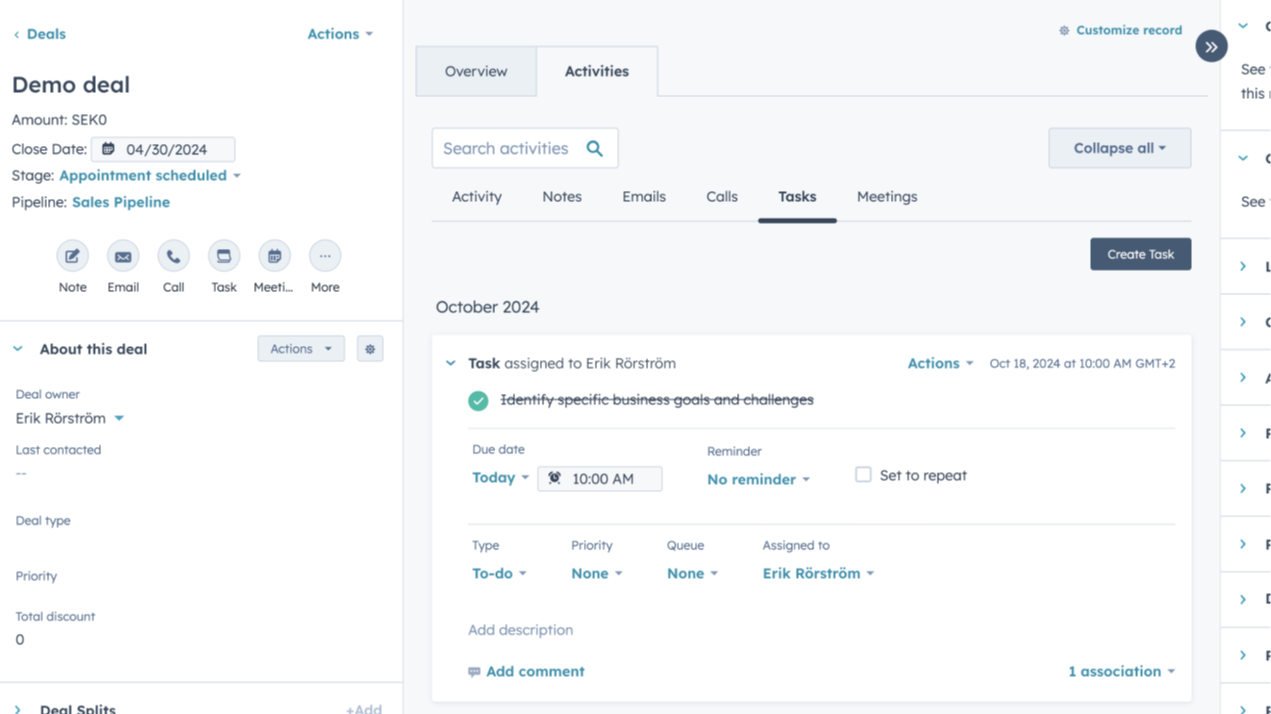 Convert activities into HubSpot tasks