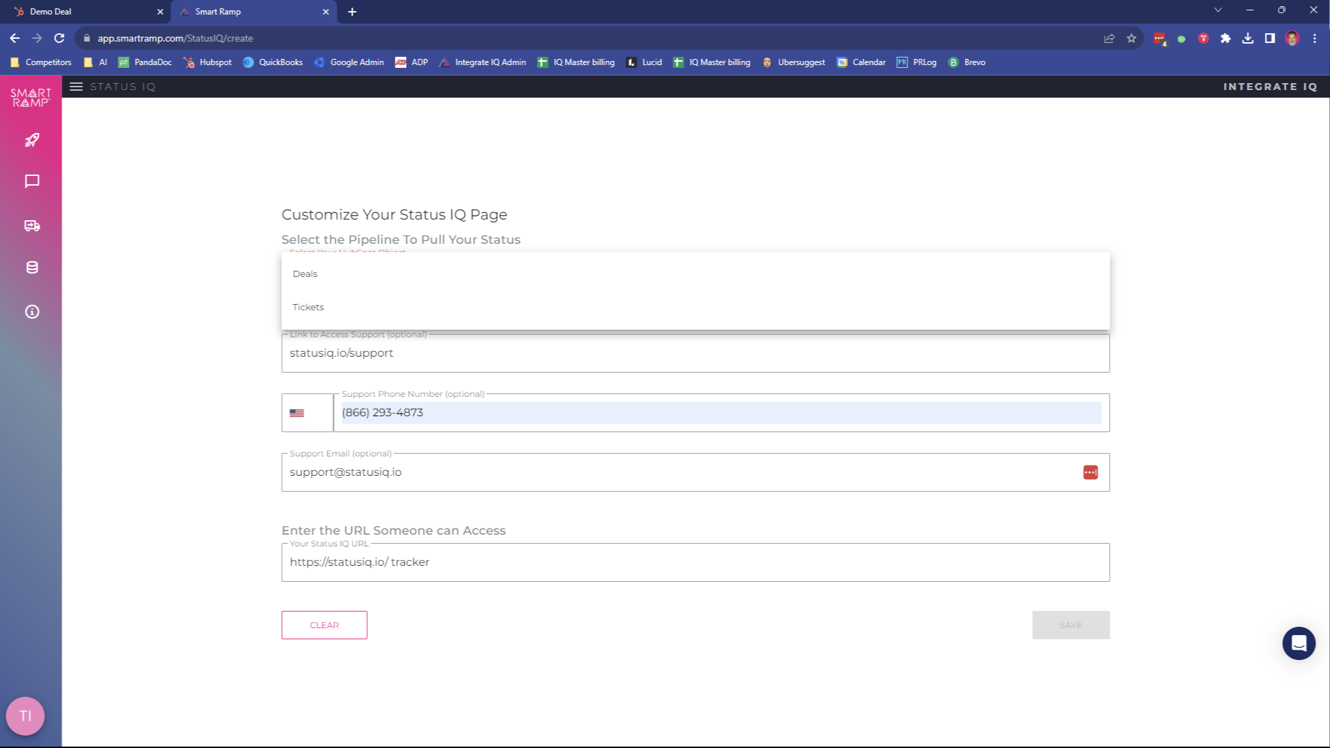 Paid versions of Status IQ allow administrators to replace our brand with yours, including a logo, domain and brand colors. Paid versions also display status of more than one deal or ticket.
