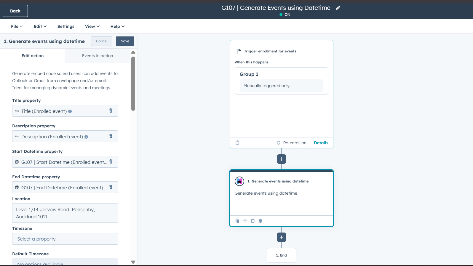 它利用 HubSpot 记录属性自动填充标题、描述、日期、时间和地点等活动详细信息,无需人工干预。