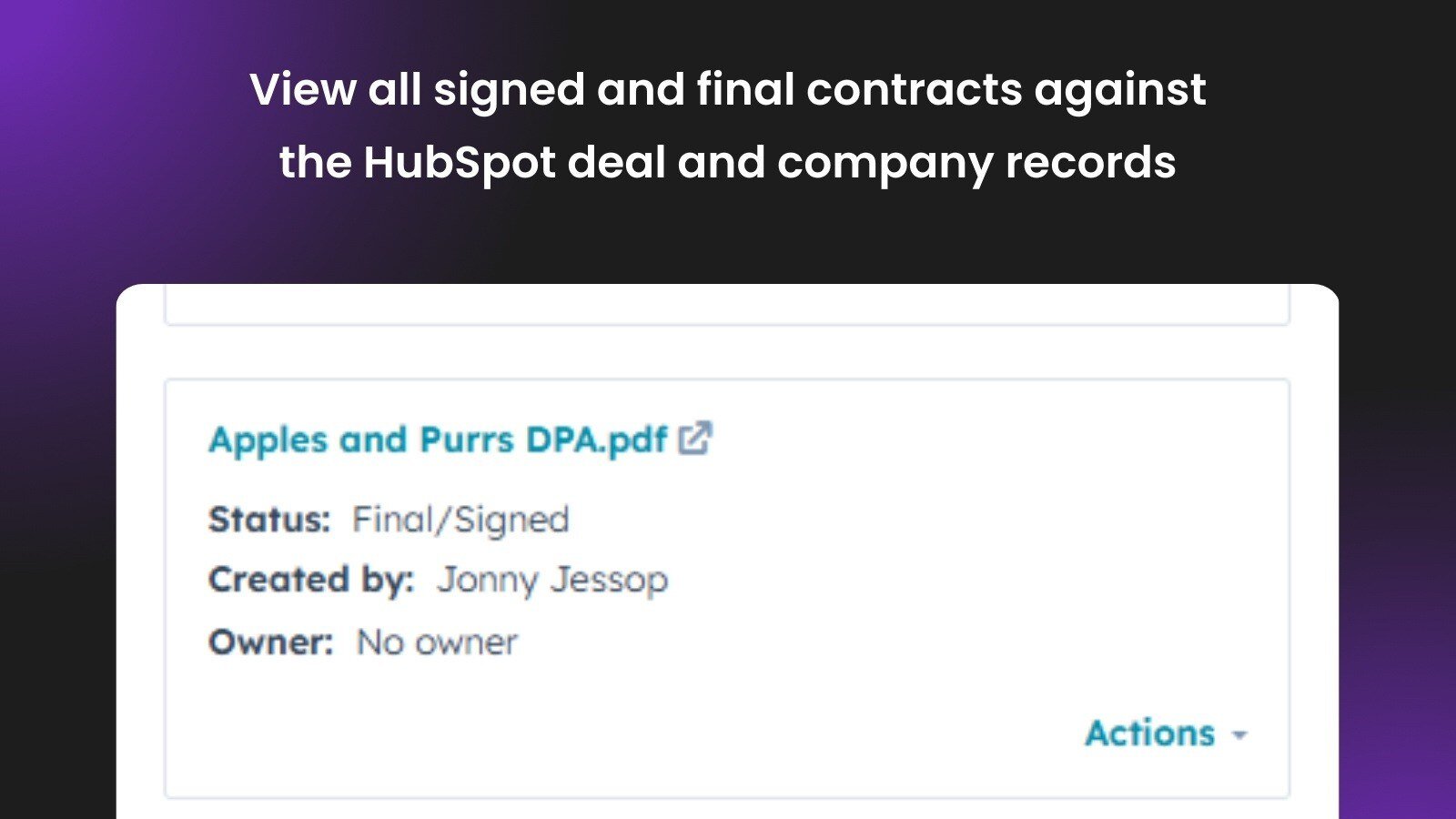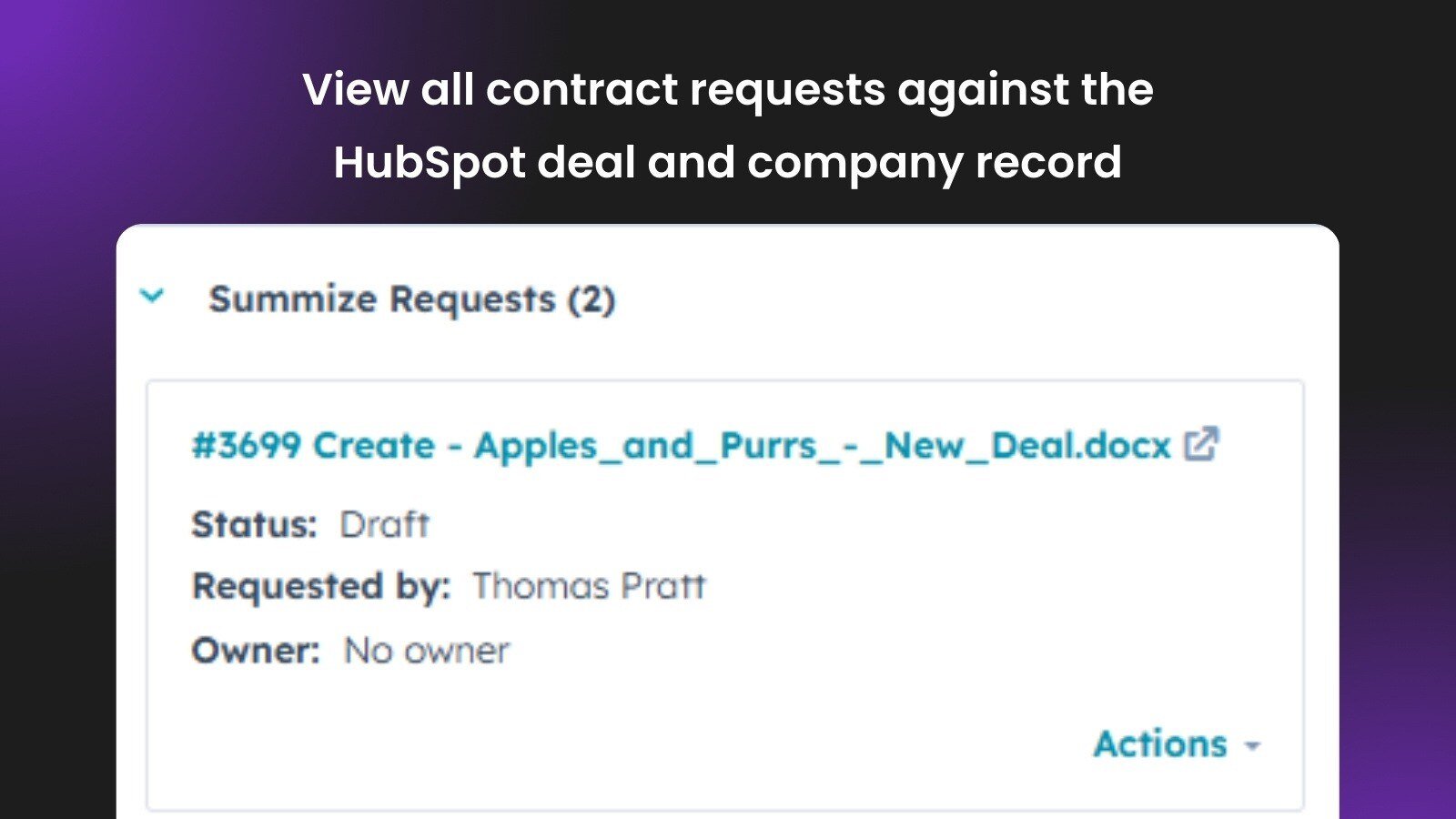 All contracts, including signed versions, previous agreements and attachments, will automatically save against your HubSpot deal and company records, as well as syncing to the Summize platform.