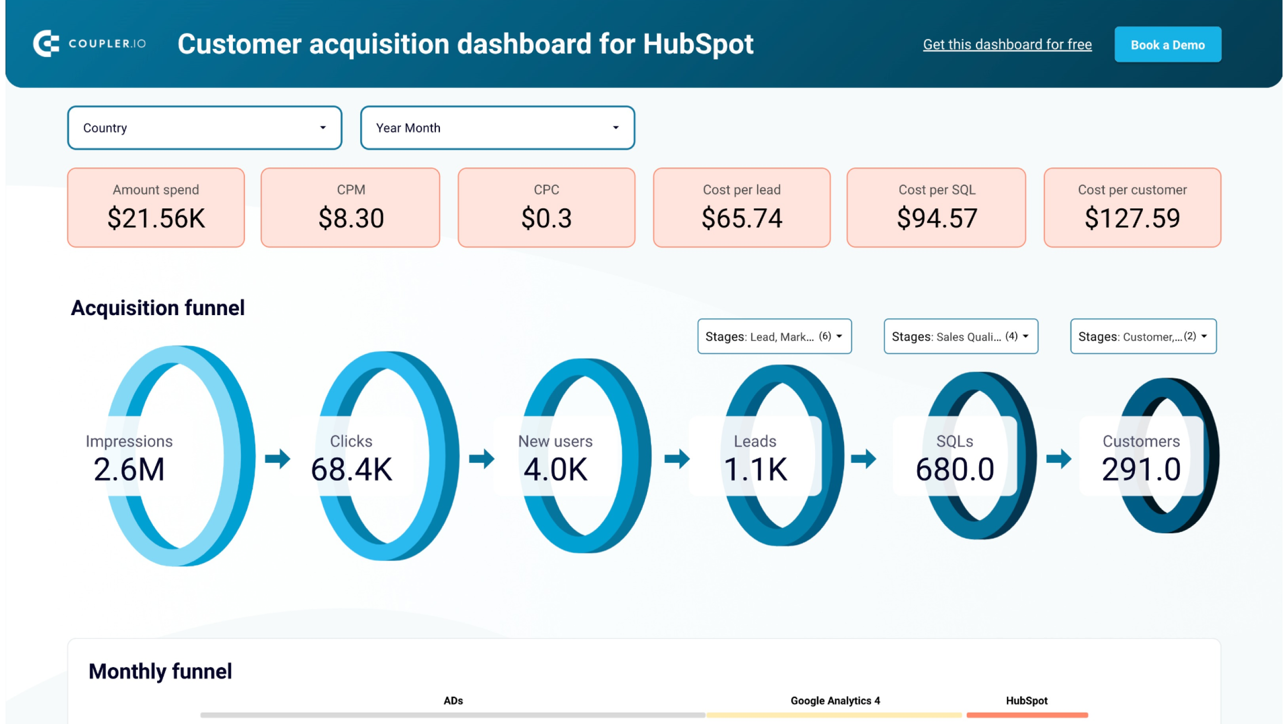 Customer acquisition dashboard to monitor your acquisition funnel