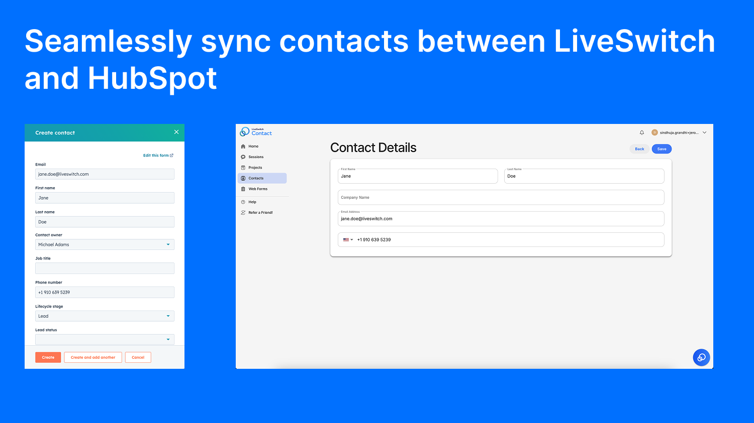 Any time a new contact is created in either LiveSwitch or HubSpot, this app will create a corresponding contact in the other platform.
