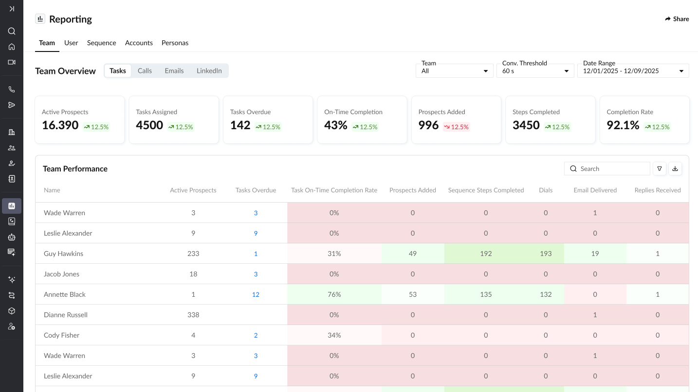 为您的团队提供每个活动序列的单一视图--实时参与数据、潜在客户状态和信号驱动的优先级都在一个地方。